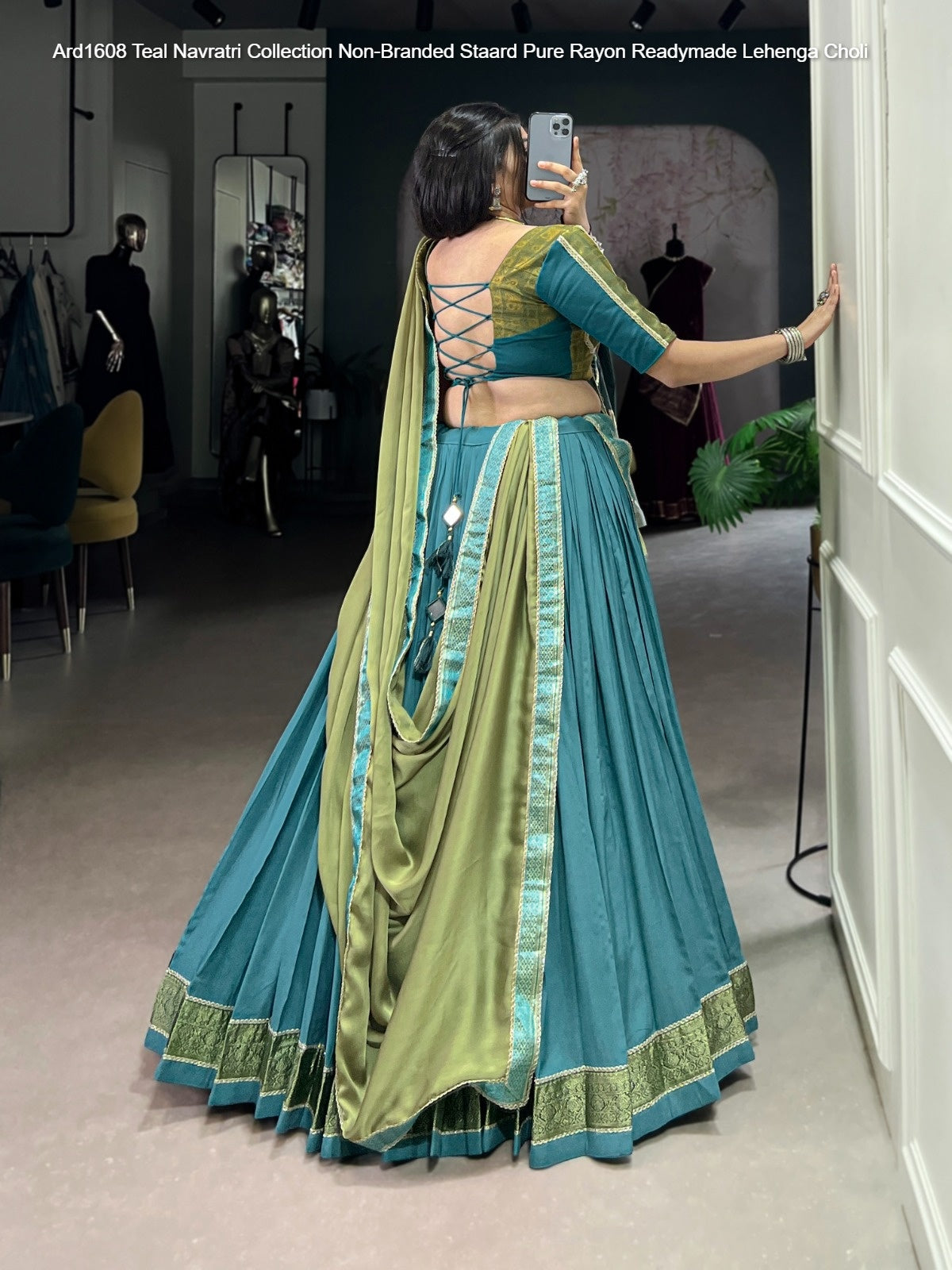 Ard1608 Teal Navratri Collection Non-Branded Staard Pure Rayon Readymade Lehenga Choli