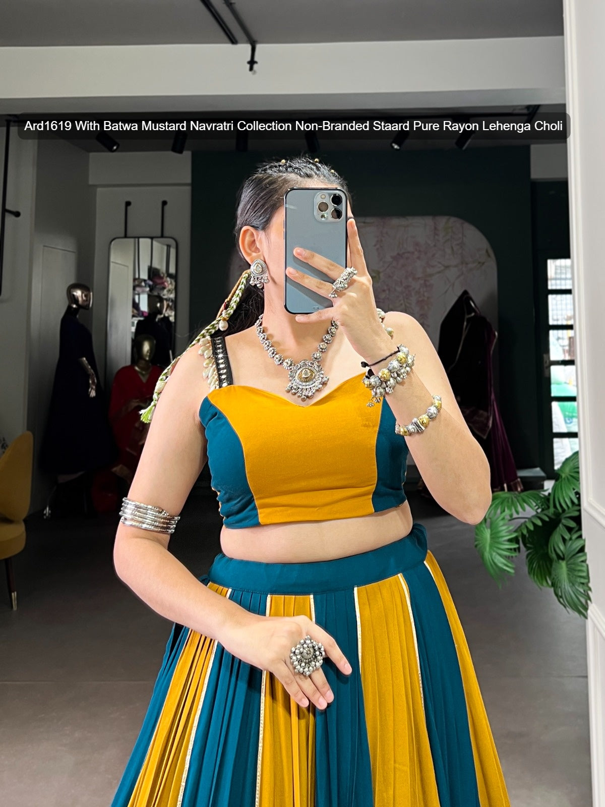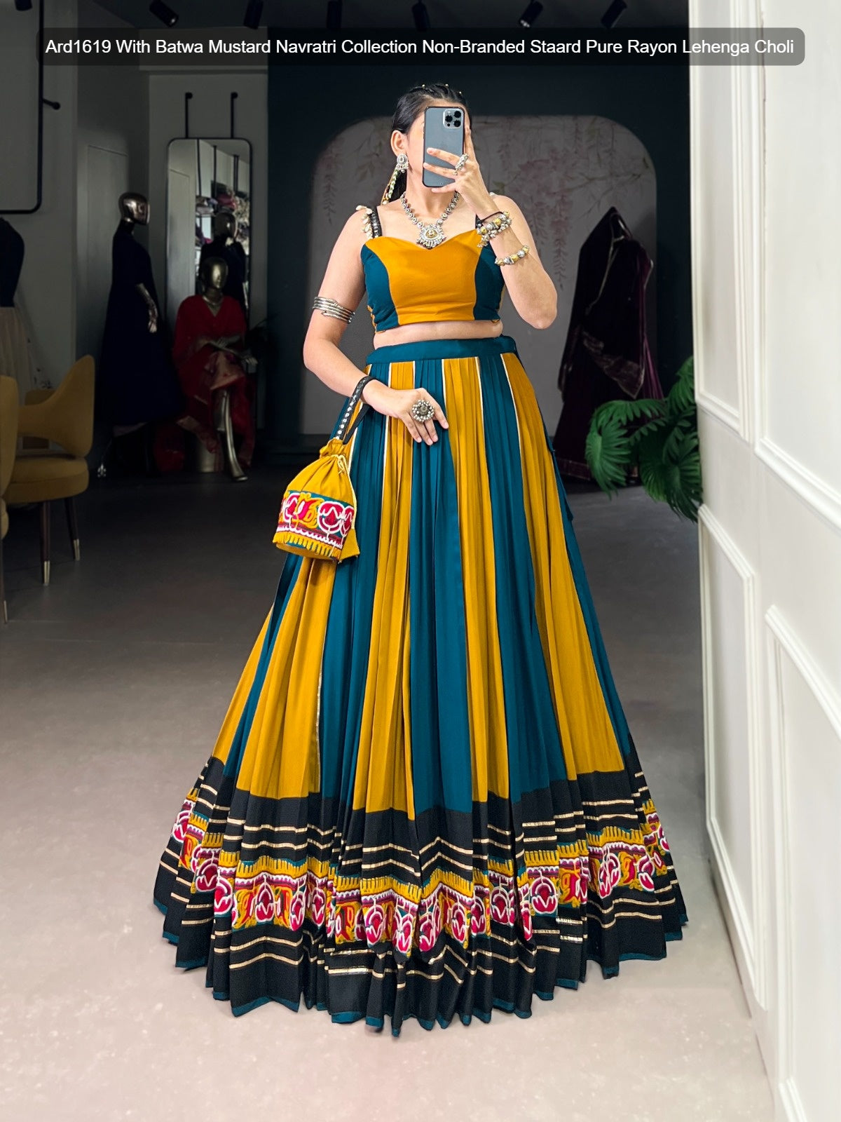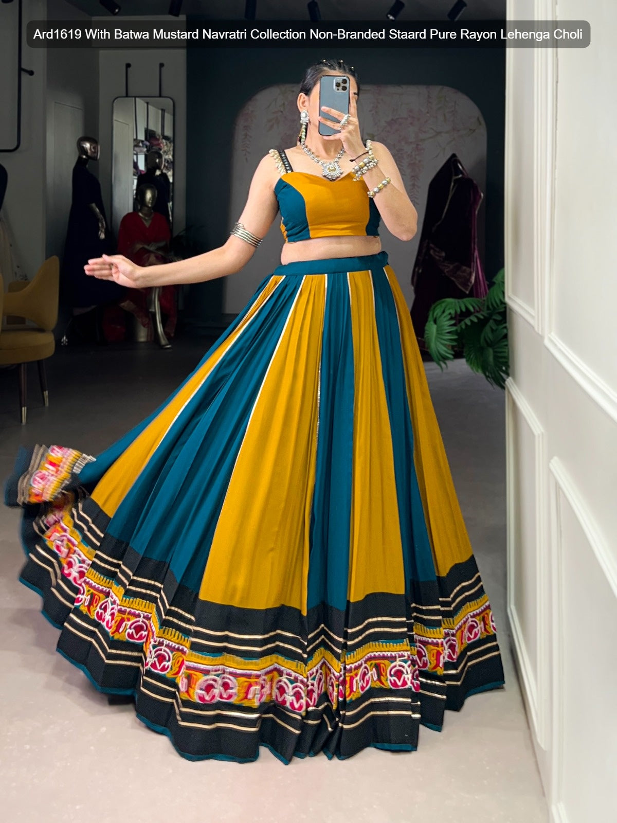 Ard1619 With Batwa Mustard Navratri Collection Non-Branded Staard Pure Rayon Lehenga Choli