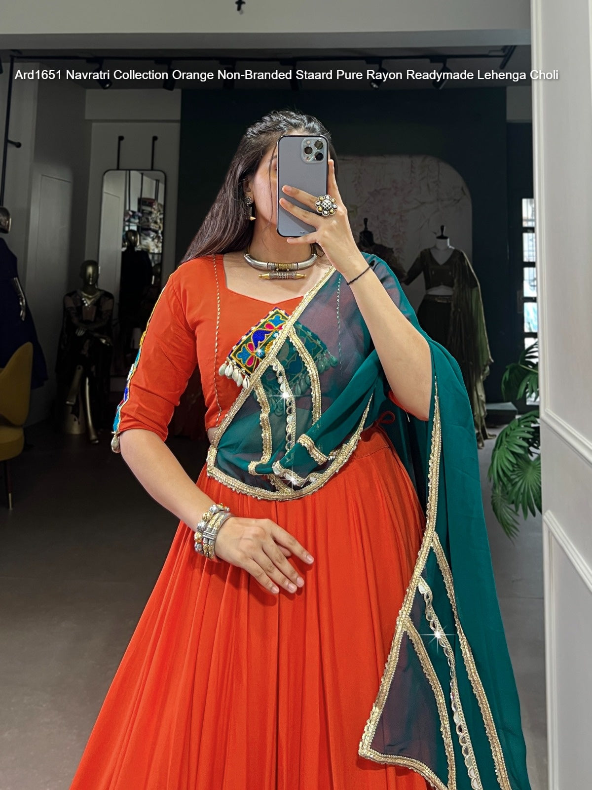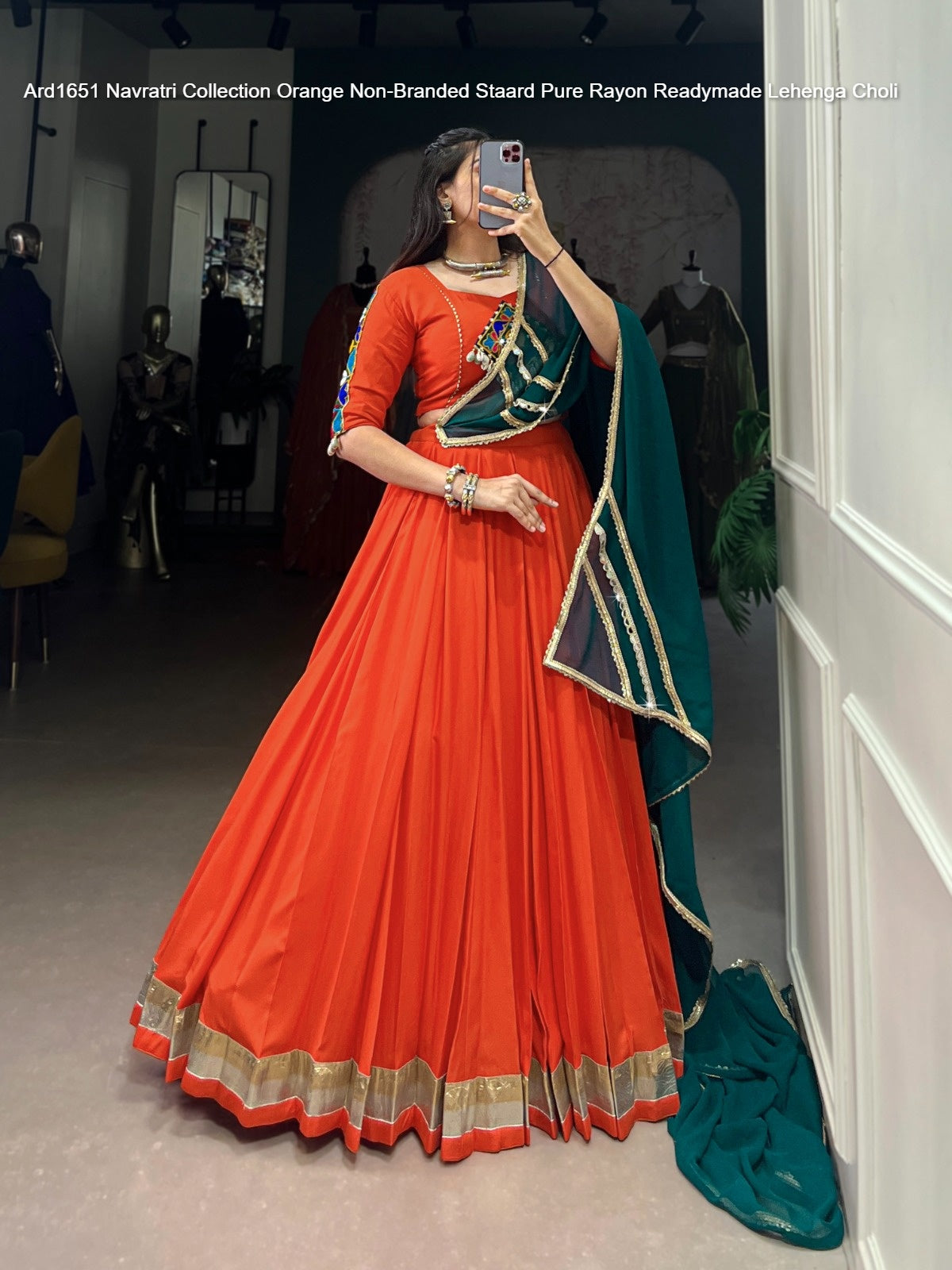 Ard1651 Navratri Collection Orange Non-Branded Staard Pure Rayon Readymade Lehenga Choli