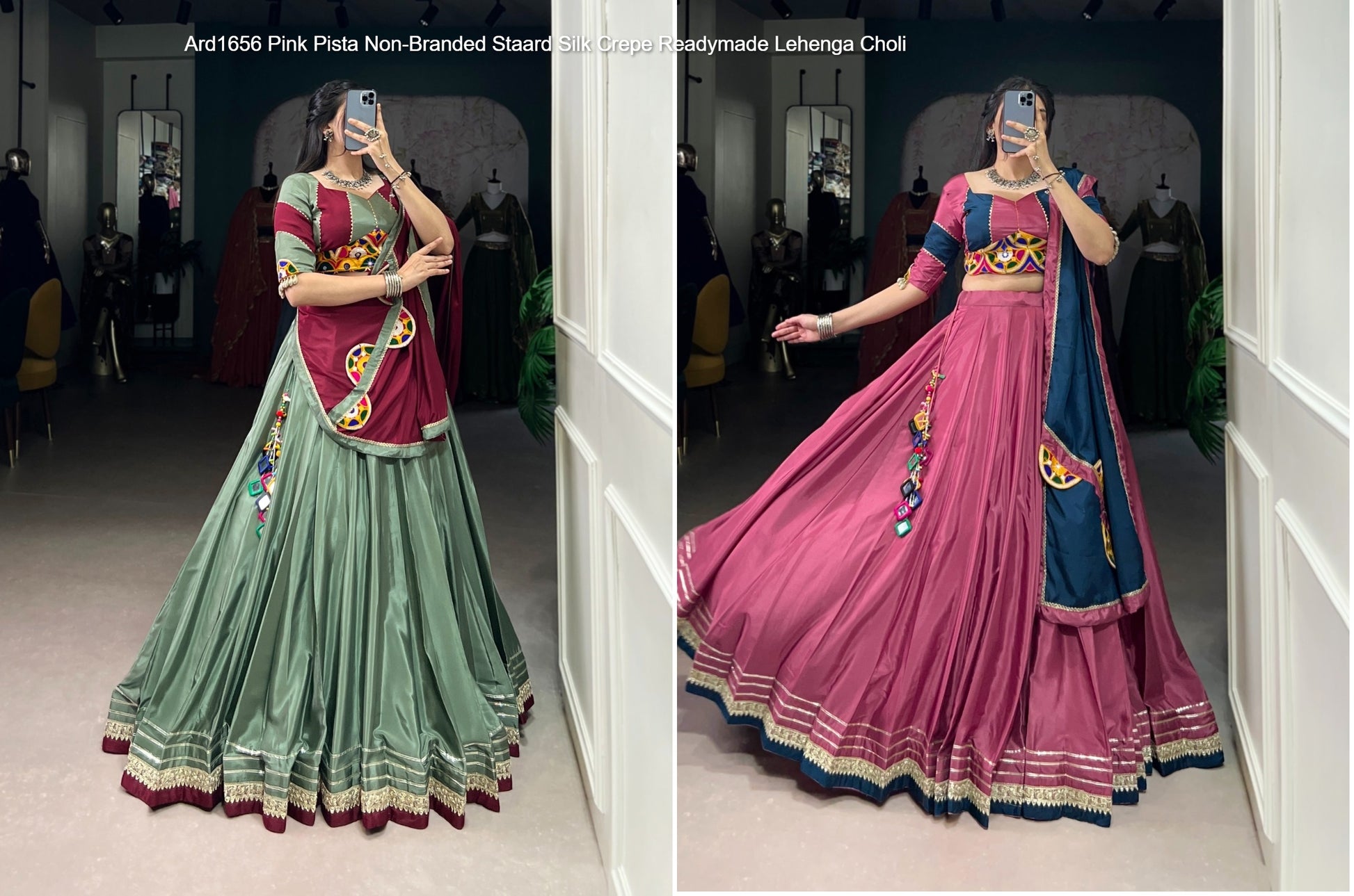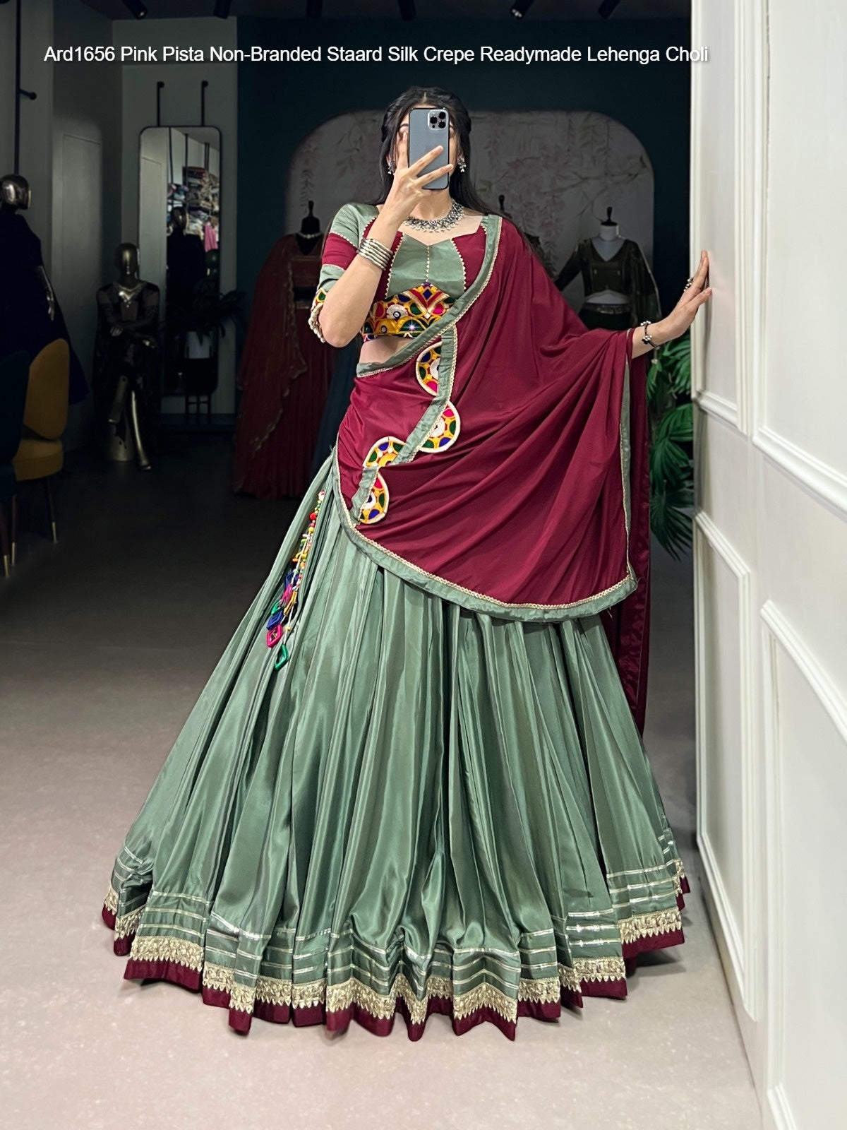 - Ard1656 Pink Pista Non-Branded Staard Silk Crepe Readymade Lehenga Choli Dealer Ahmedabad Surat Wholesale Gujarat India Lowest Price Best Quality Buy Purchase Shipping Kurta Salwaar Kameez Also free Cash on delivery