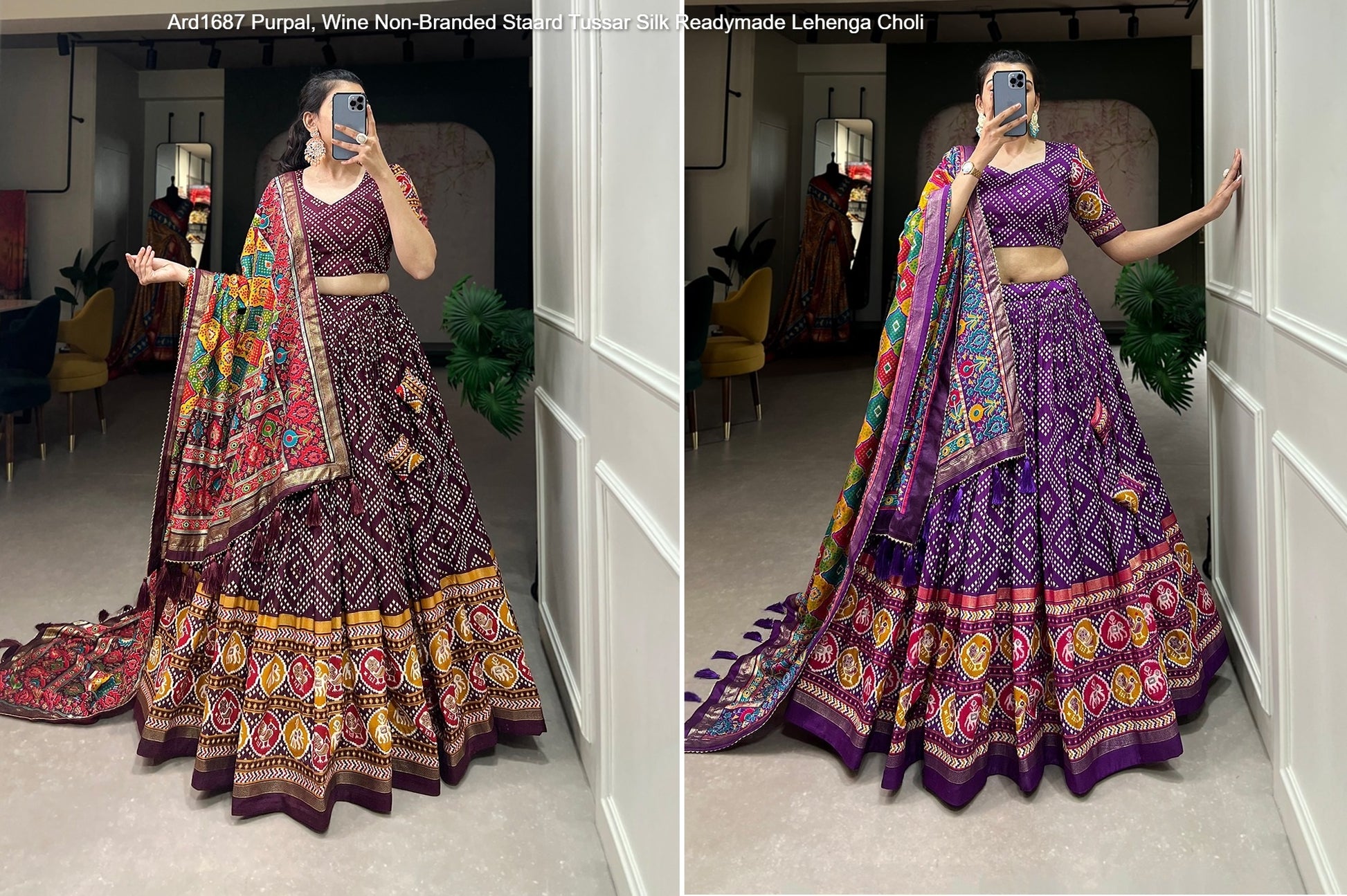 - Ard1687 Purpal, Wine Non-Branded Staard Tussar Silk Readymade Lehenga Choli Dealer Ahmedabad Surat Wholesale Gujarat India Lowest Price Best Quality Buy Purchase Shipping Kurta Salwaar Kameez Also free Cash on delivery