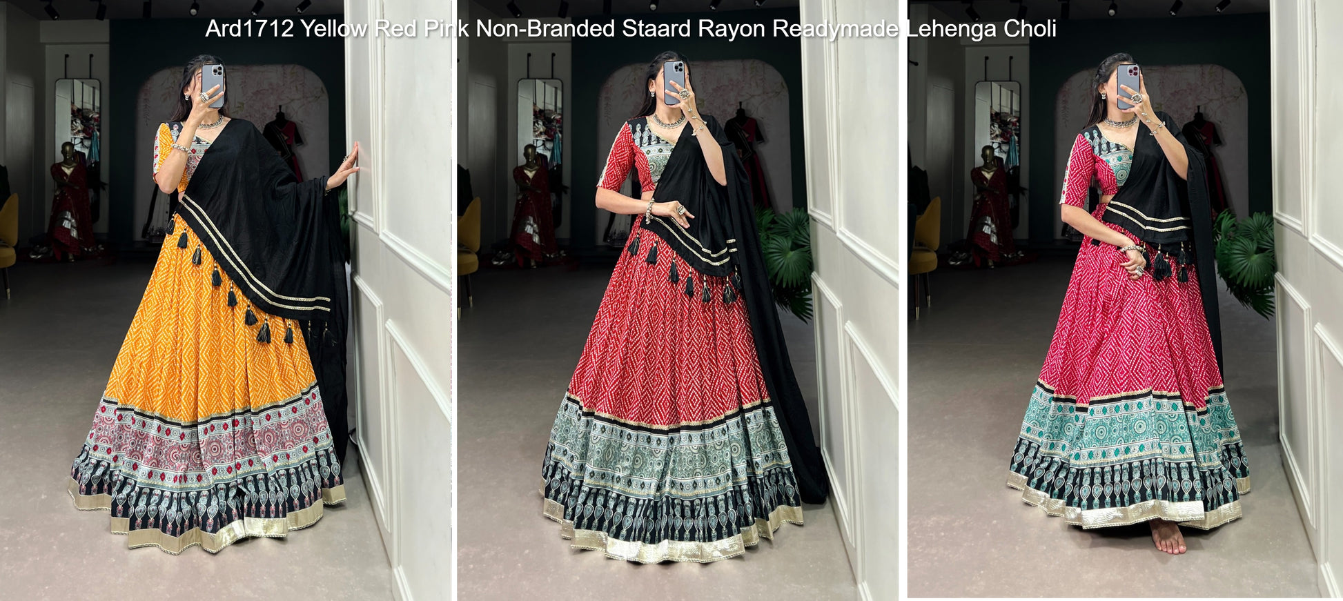 Ard1712 Yellow Red Pink Non-Branded Staard Rayon Readymade Lehenga Choli