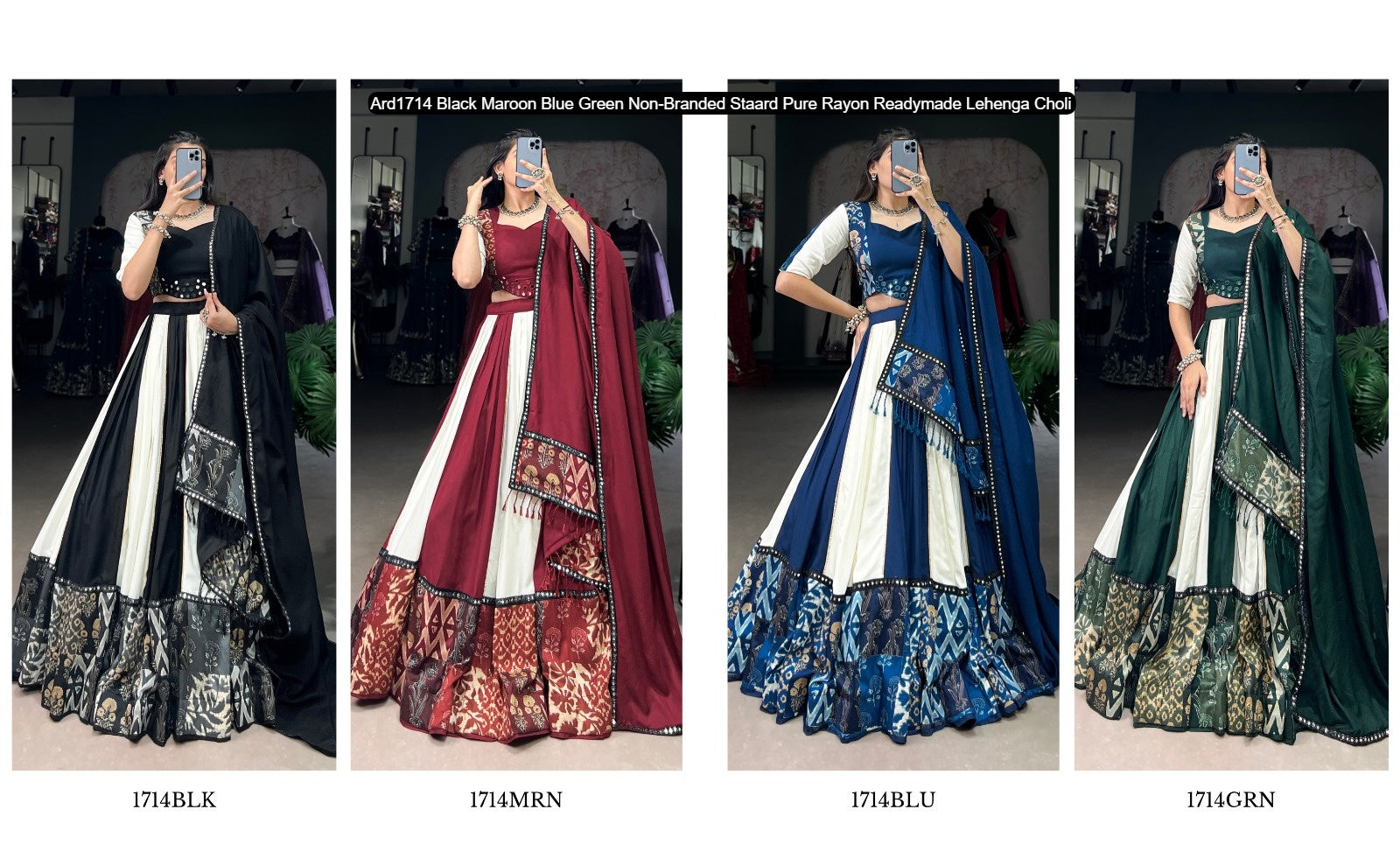 Ard1714 Black Maroon Blue Green Non-Branded Staard Pure Rayon Readymade Lehenga Choli