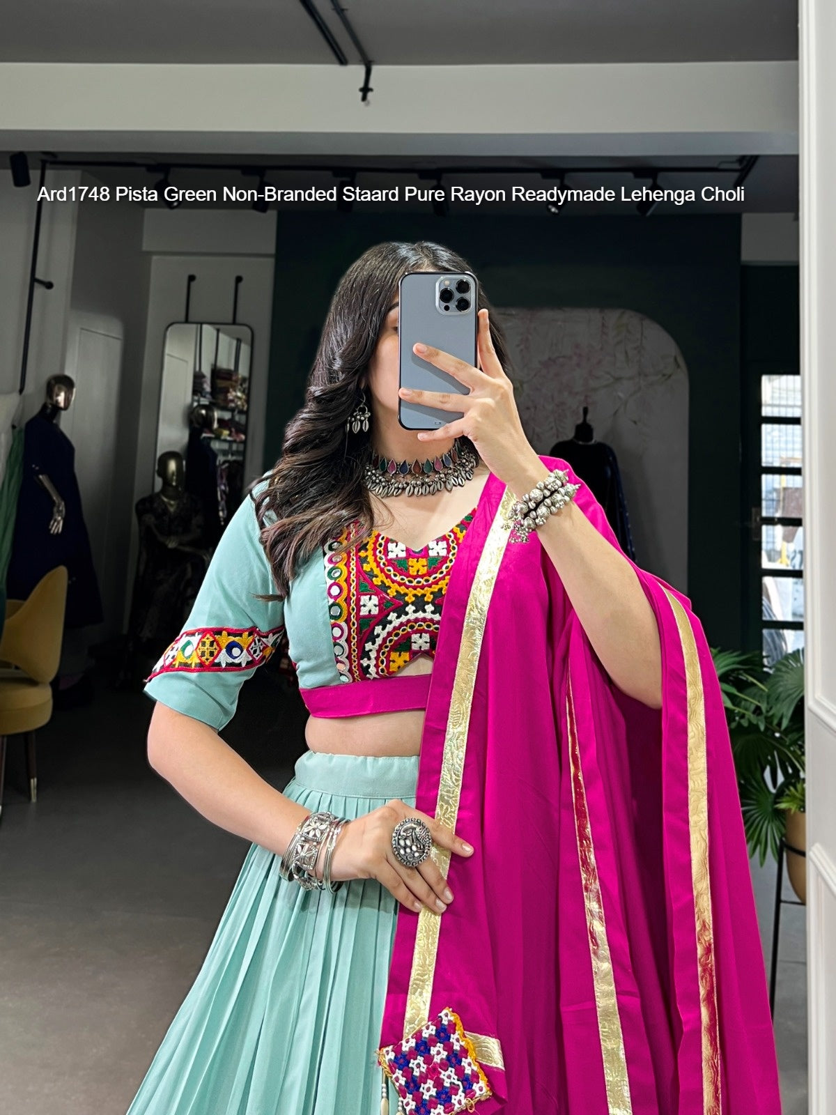 Ard1748 Pista Green Non-Branded Staard Pure Rayon Readymade Lehenga Choli