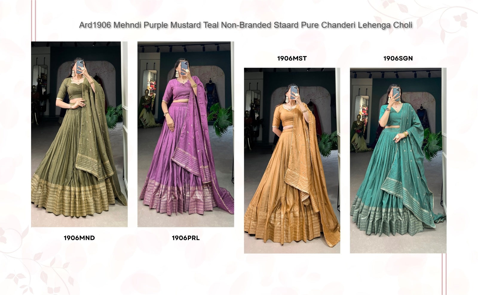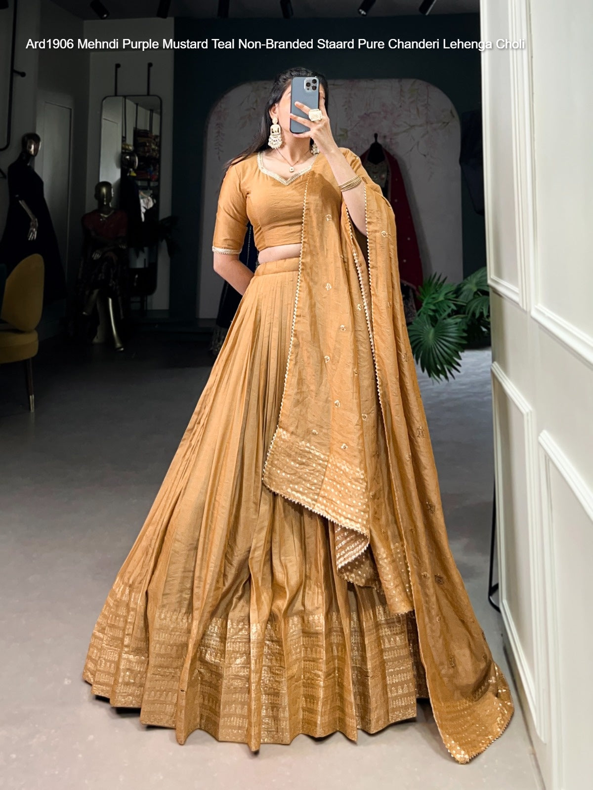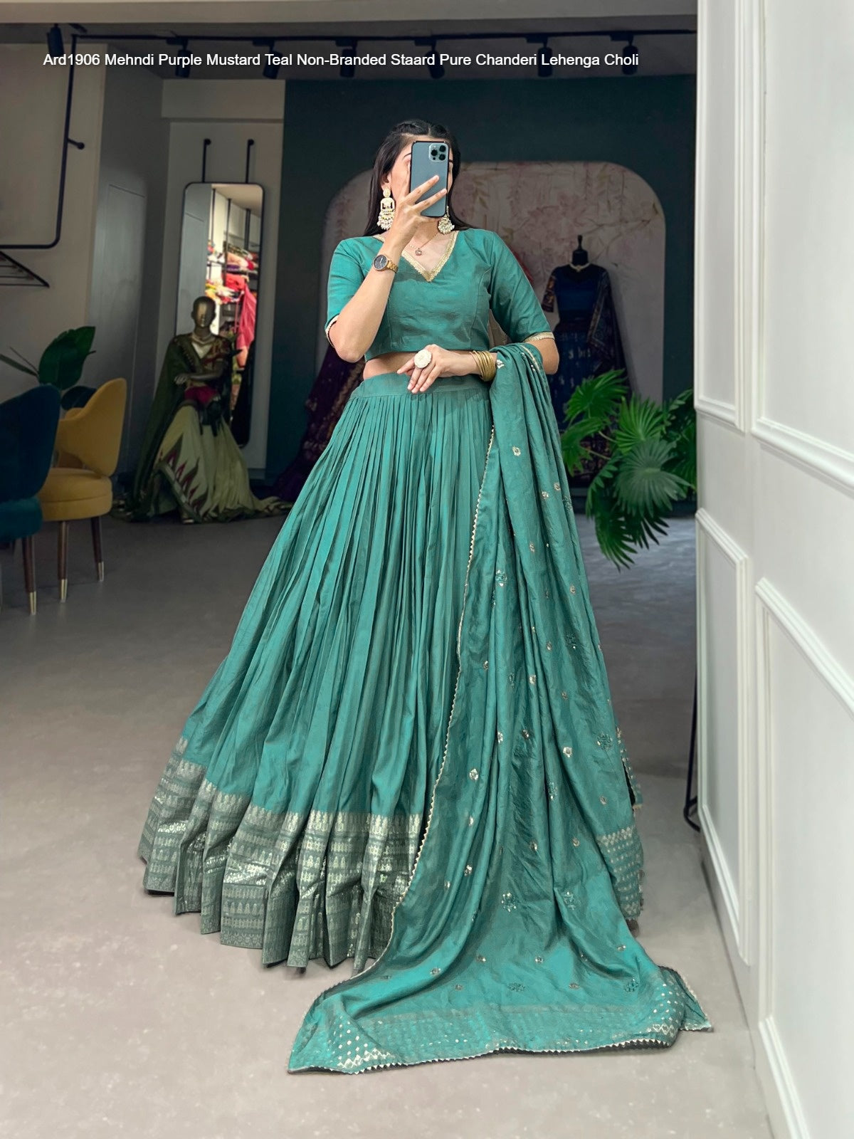Ard1906 Mehndi Purple Mustard Teal Non-Branded Staard Pure Chanderi Lehenga Choli