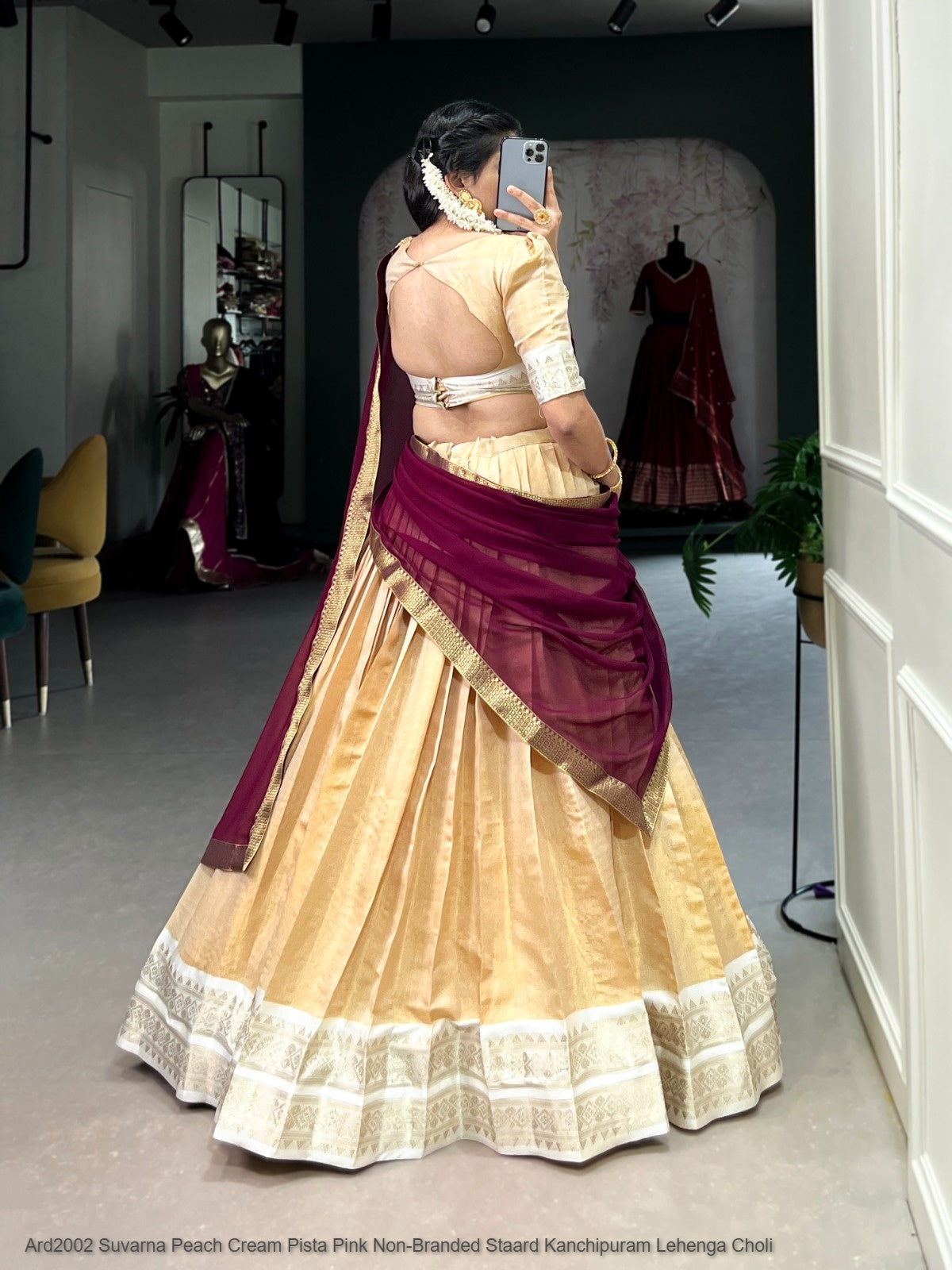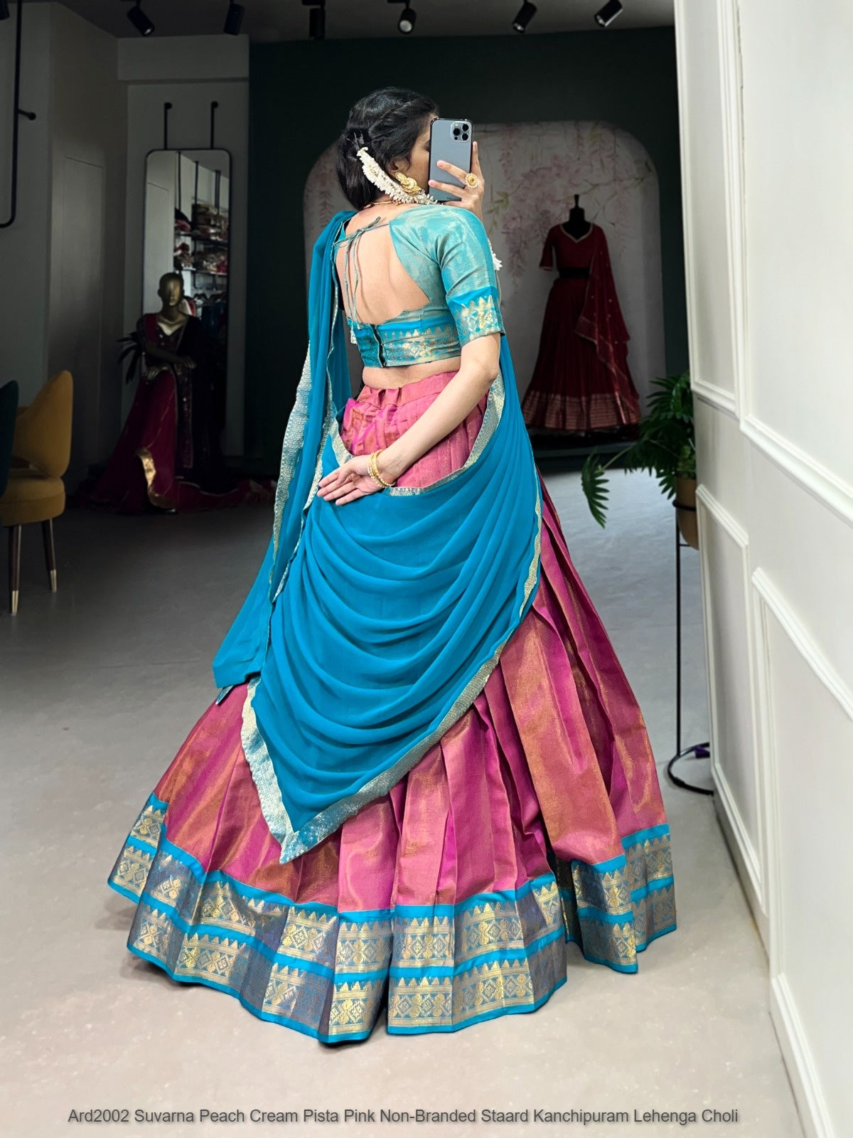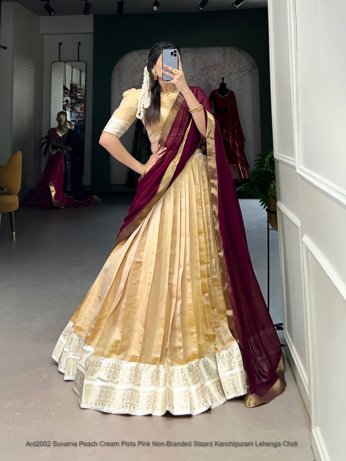 Ard2002 Suvarna Peach Cream Pista Pink Non-Branded Staard Kanchipuram Lehenga Choli