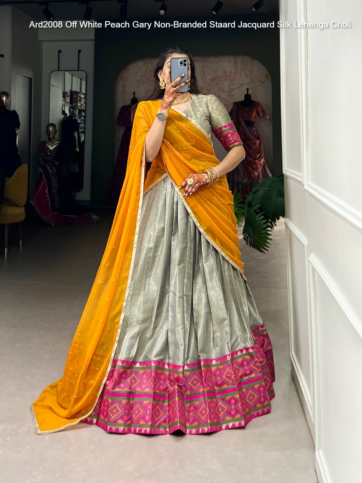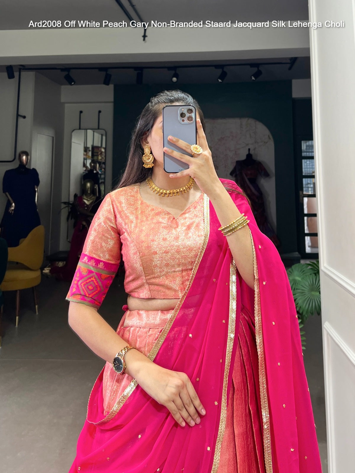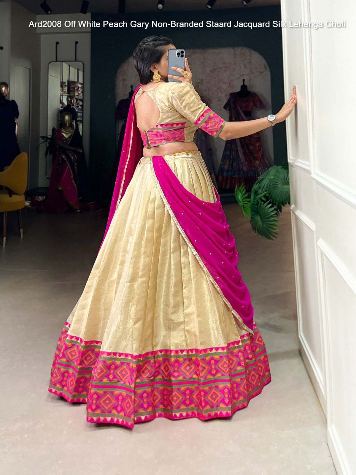 - Ard2008 Off White Peach Gary Non-Branded Staard Jacquard Silk Lehenga Choli Dealer Ahmedabad Surat Wholesale Gujarat India Lowest Price Best Quality Buy Purchase Shipping Kurta Salwaar Kameez Also free Cash on delivery