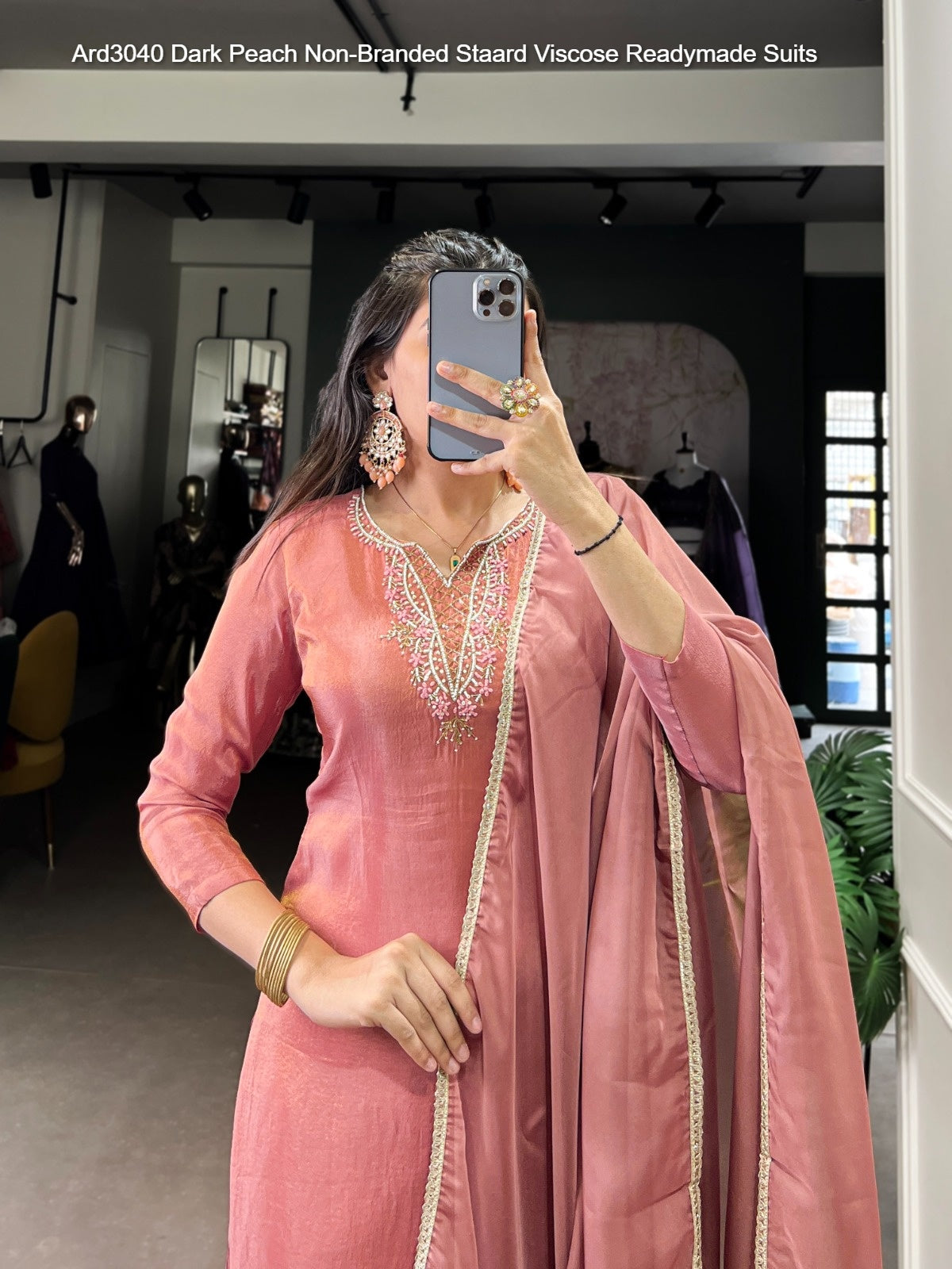 Ard3040 Dark Peach Non-Branded Staard Viscose Readymade Suits