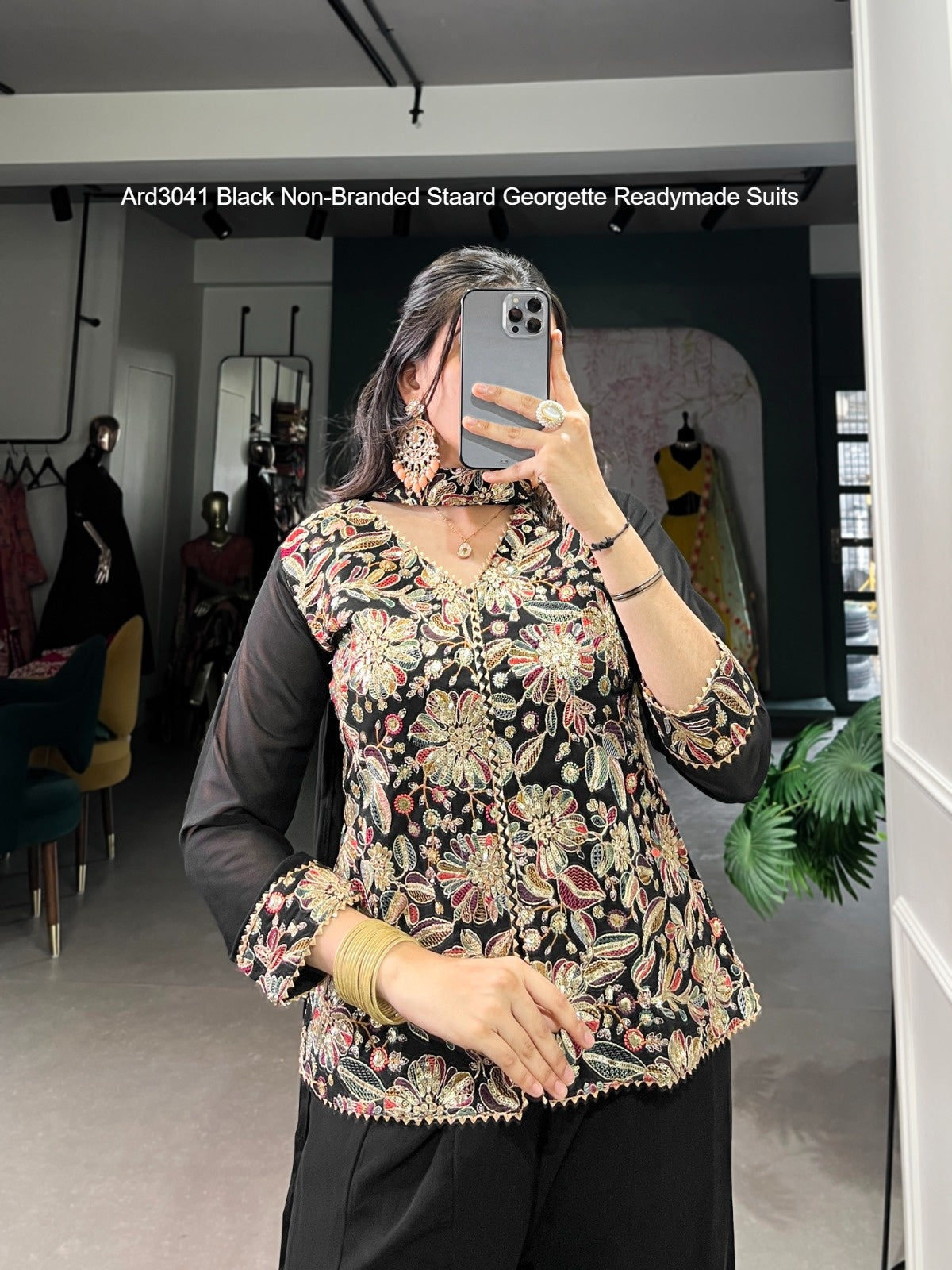 Ard3041 Black Non-Branded Staard Georgette Readymade Suits