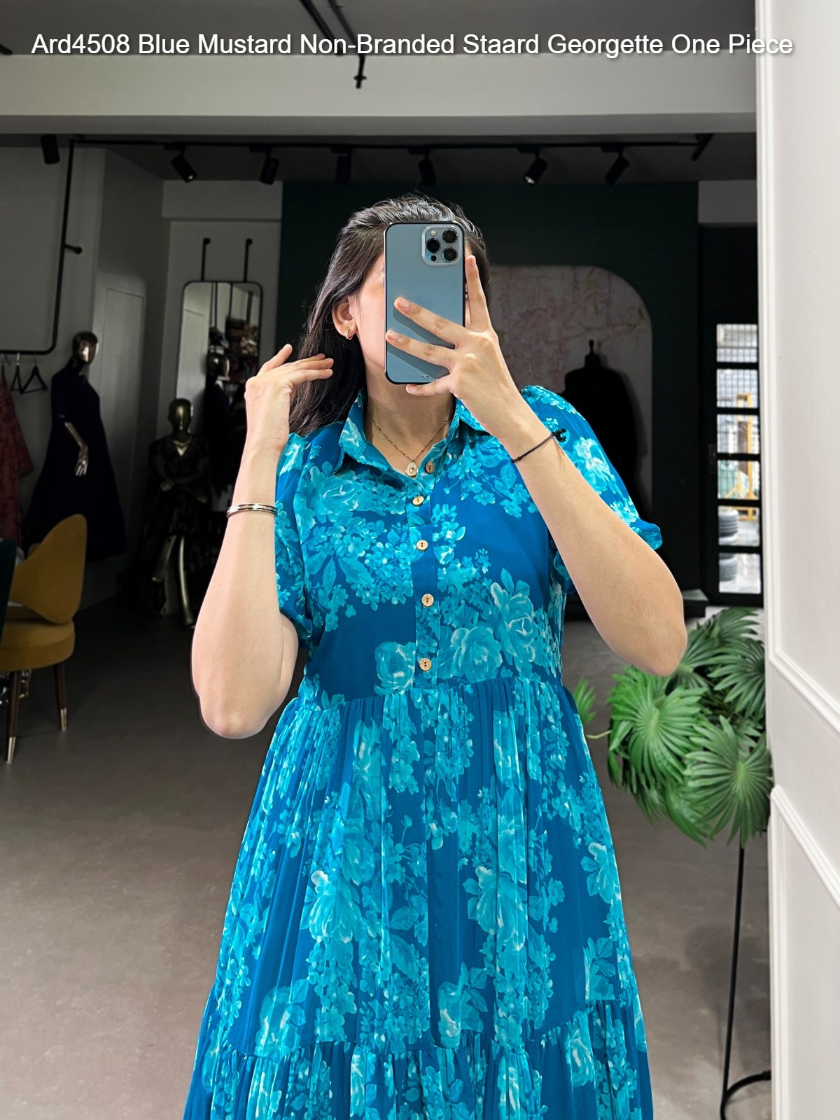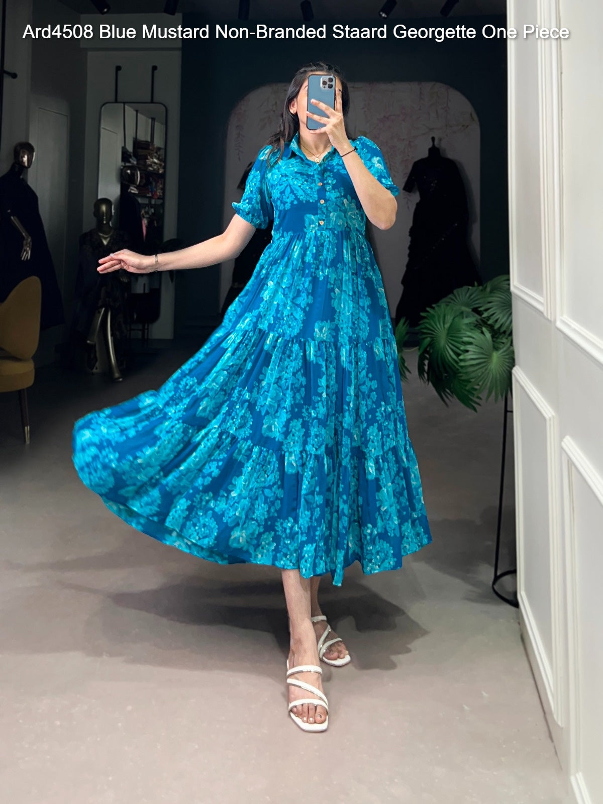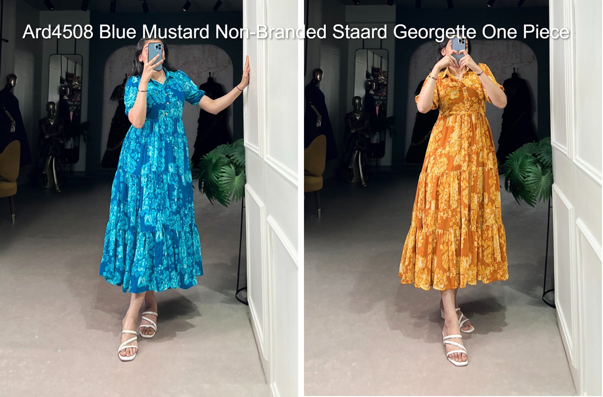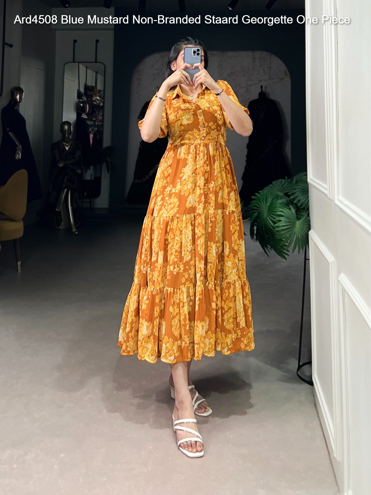 Ard4508 Blue Mustard Non-Branded Staard Georgette One Piece
