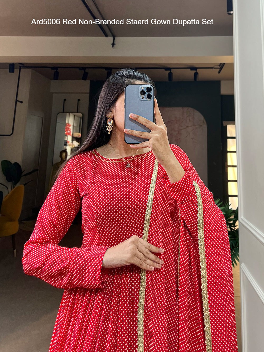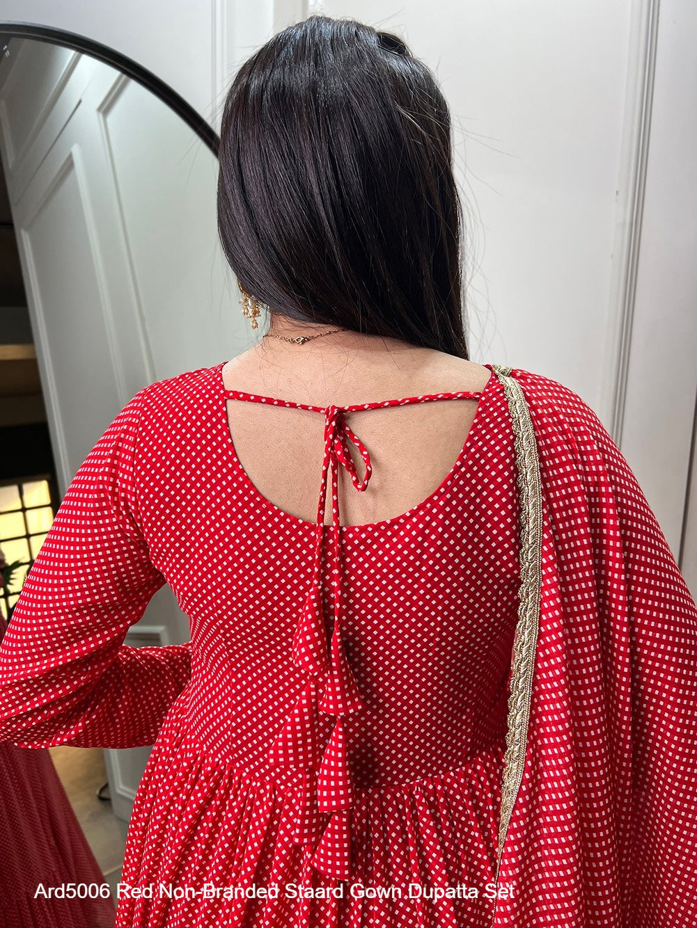 Ard5006 Red Non-Branded Staard Georgette Gown Dupatta Set