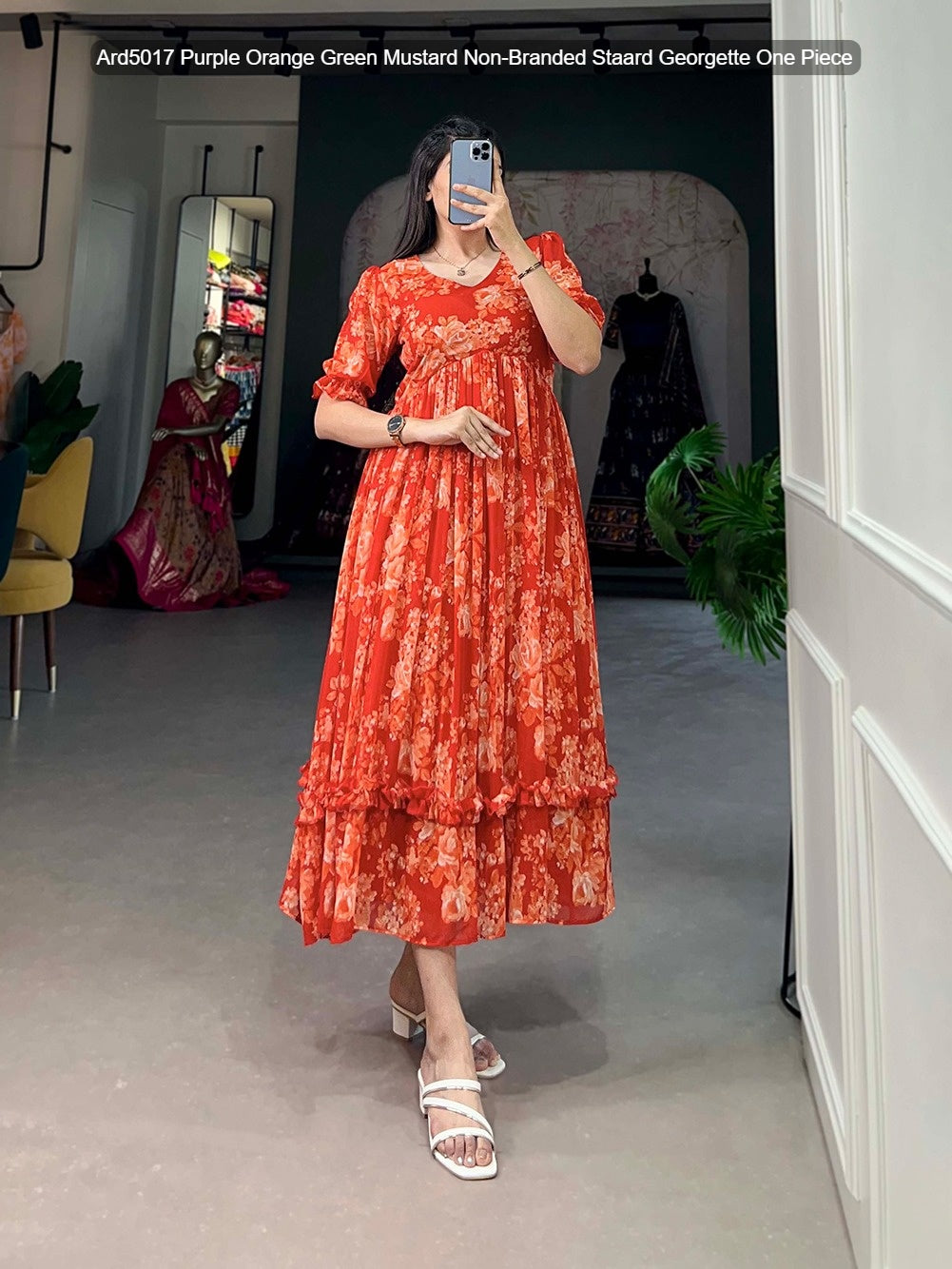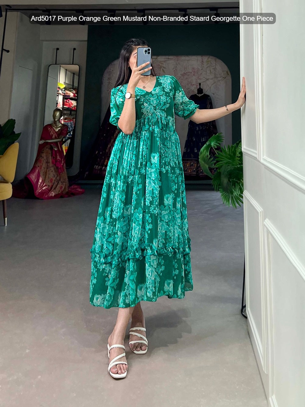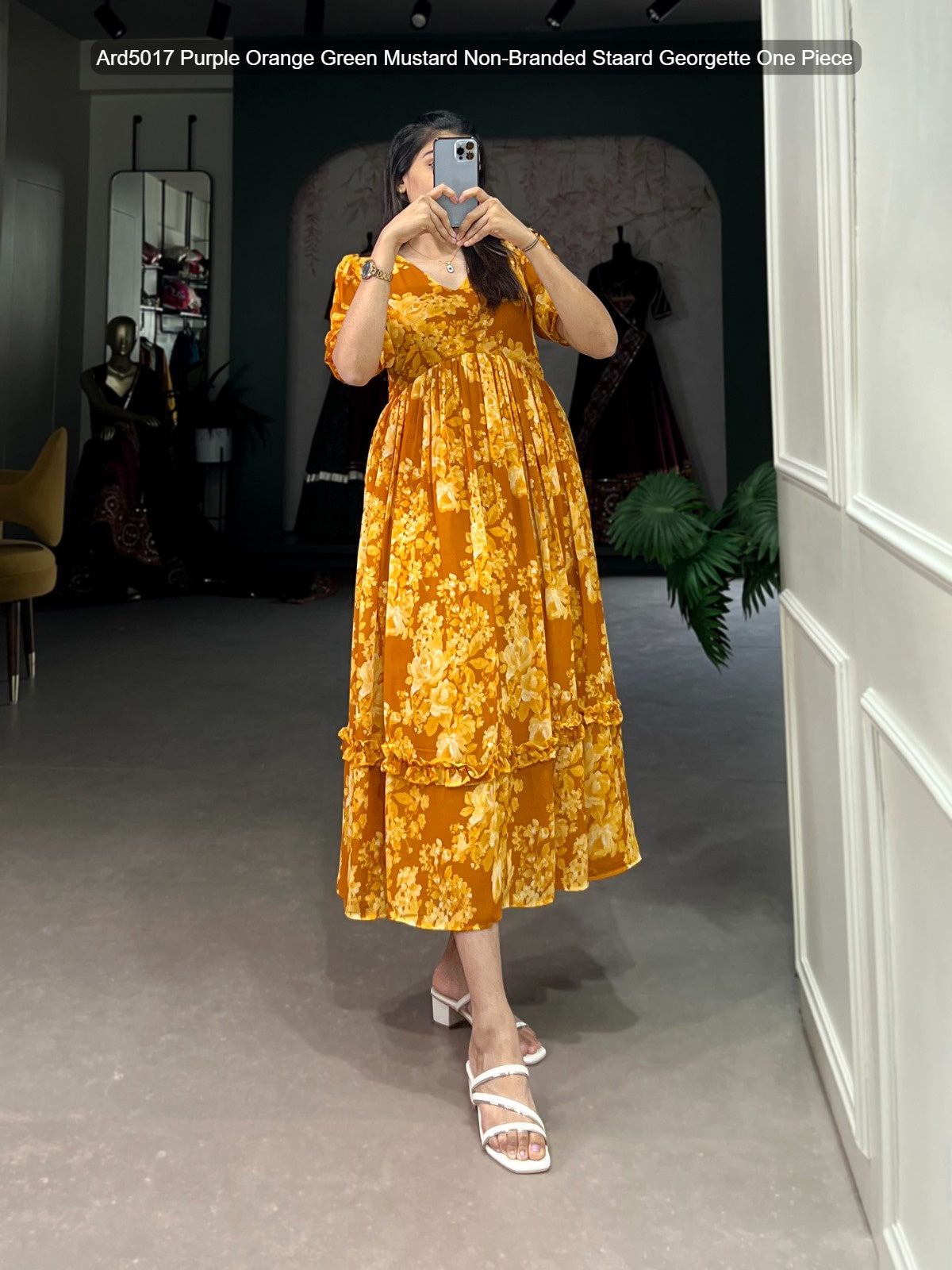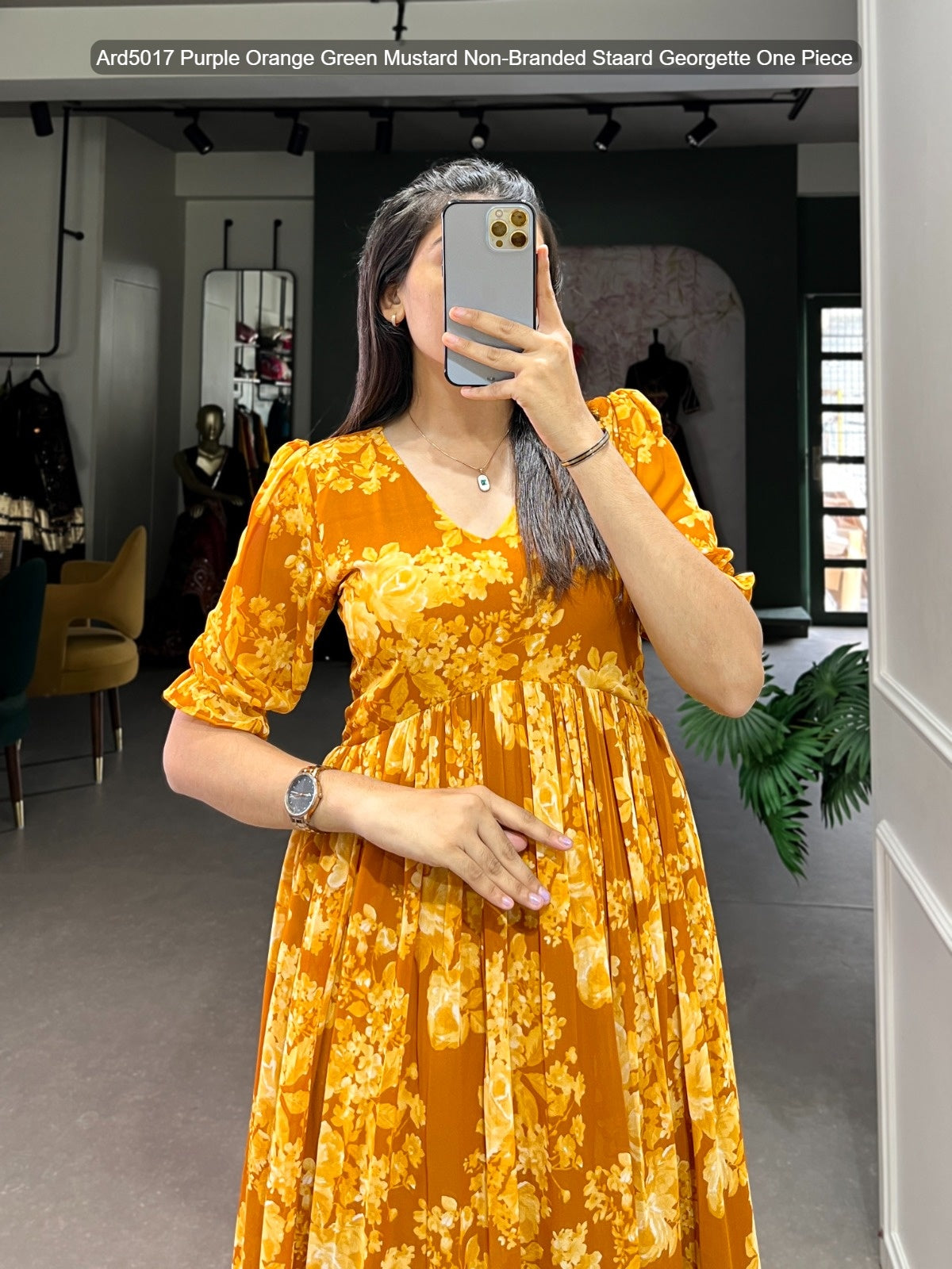 Ard5017 Purple Orange Green Mustard Non-Branded Staard Georgette One Piece