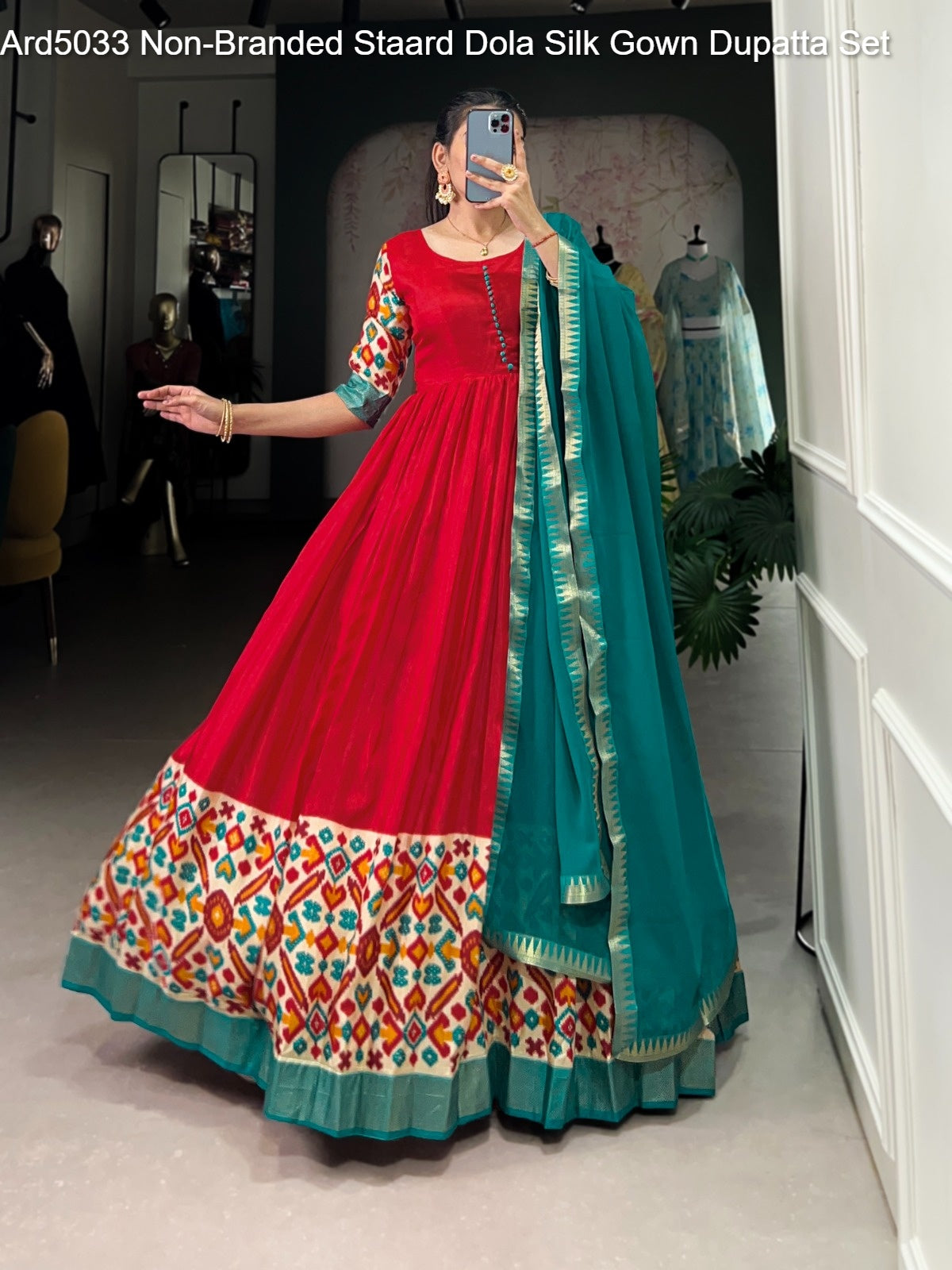 Ard5033 Non-Branded Staard Dola Silk Gown Dupatta Set