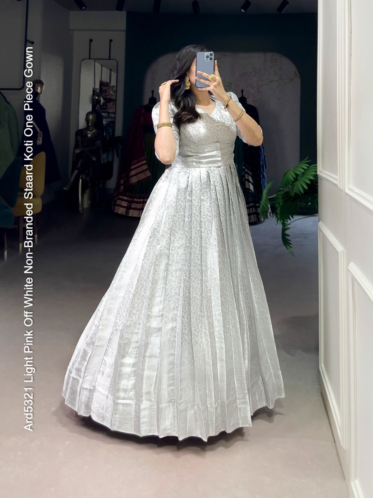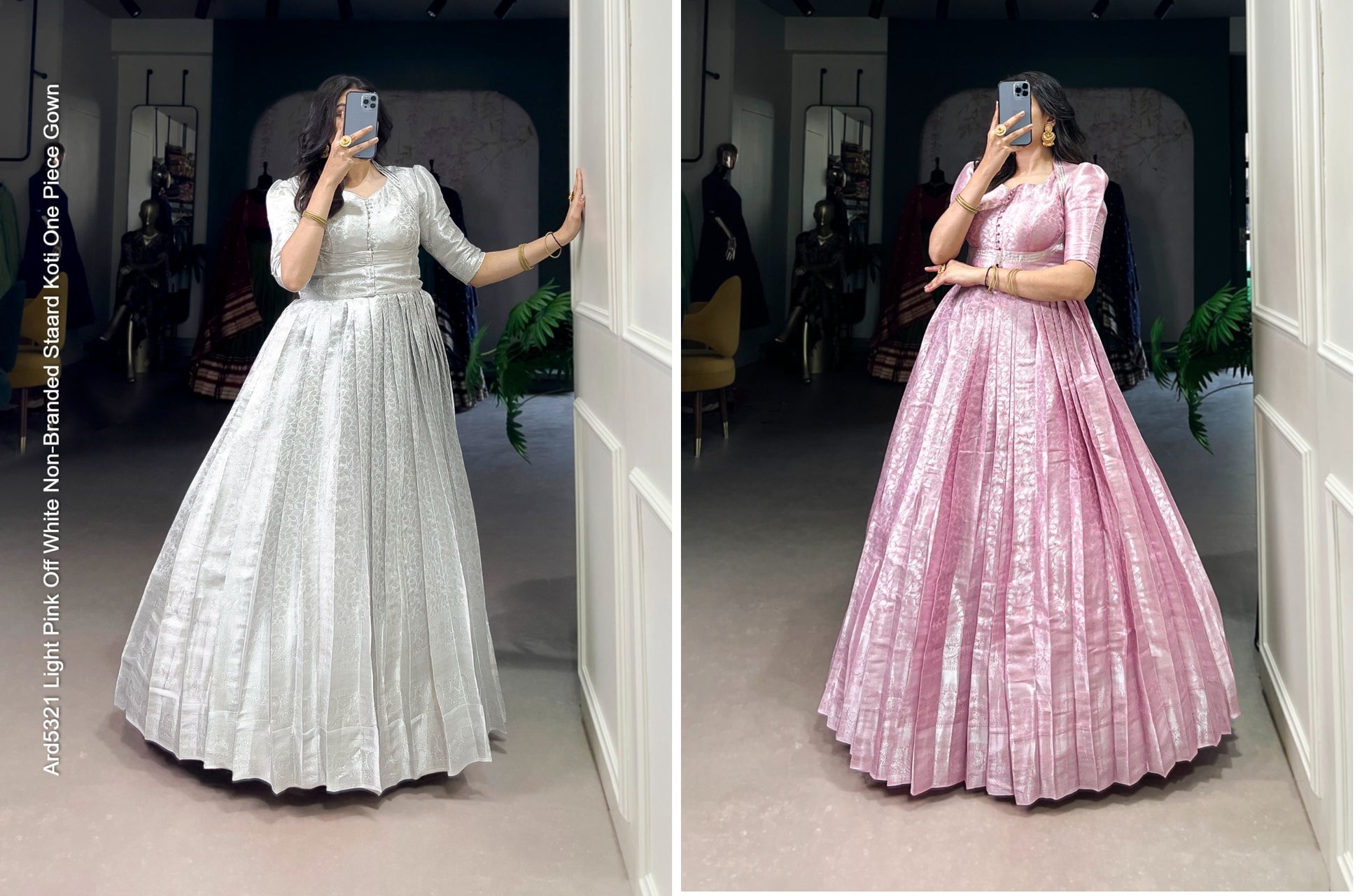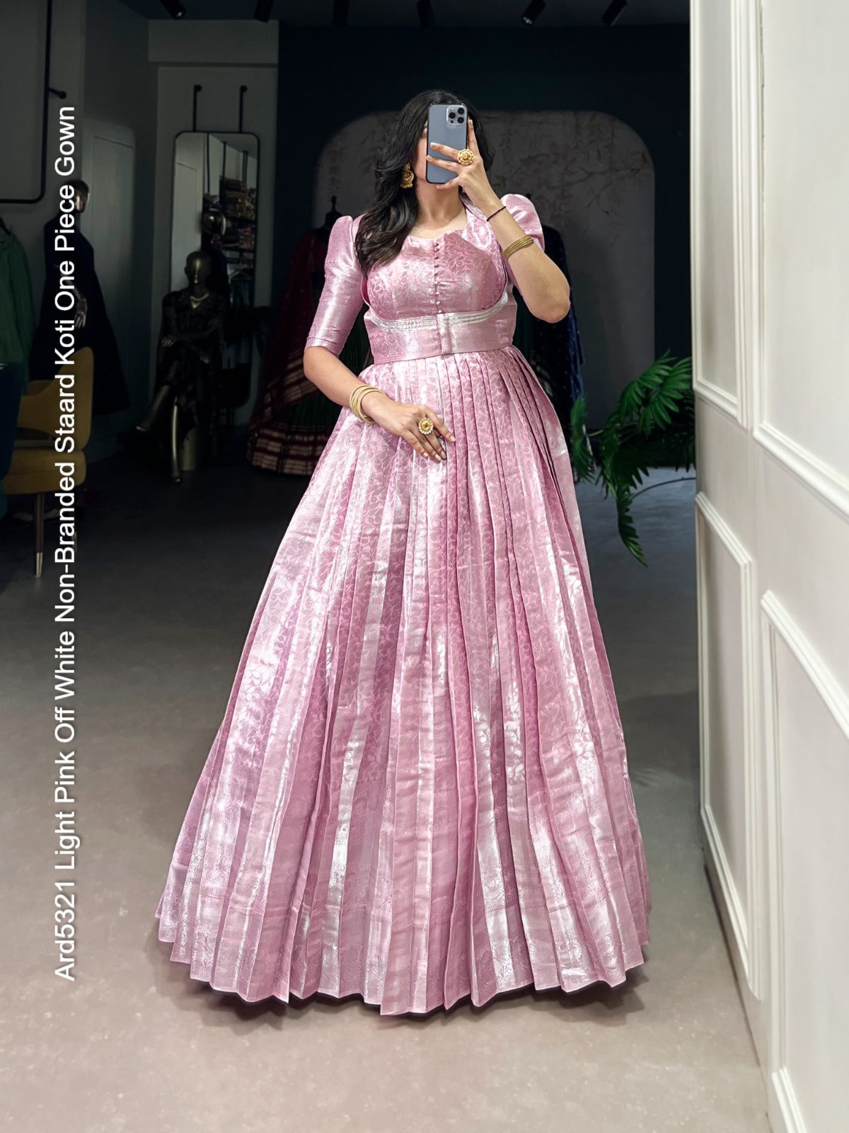 - Ard5321 Light Pink Off White Non-Branded Staard Koti One Piece Gown Dealer Ahmedabad Surat Wholesale Gujarat India Lowest Price Best Quality Buy Purchase Shipping Kurta Salwaar Kameez Also free Cash on delivery