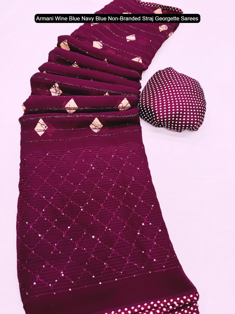 Armani Wine Blue Navy Blue Non-Branded Straj Georgette Sarees