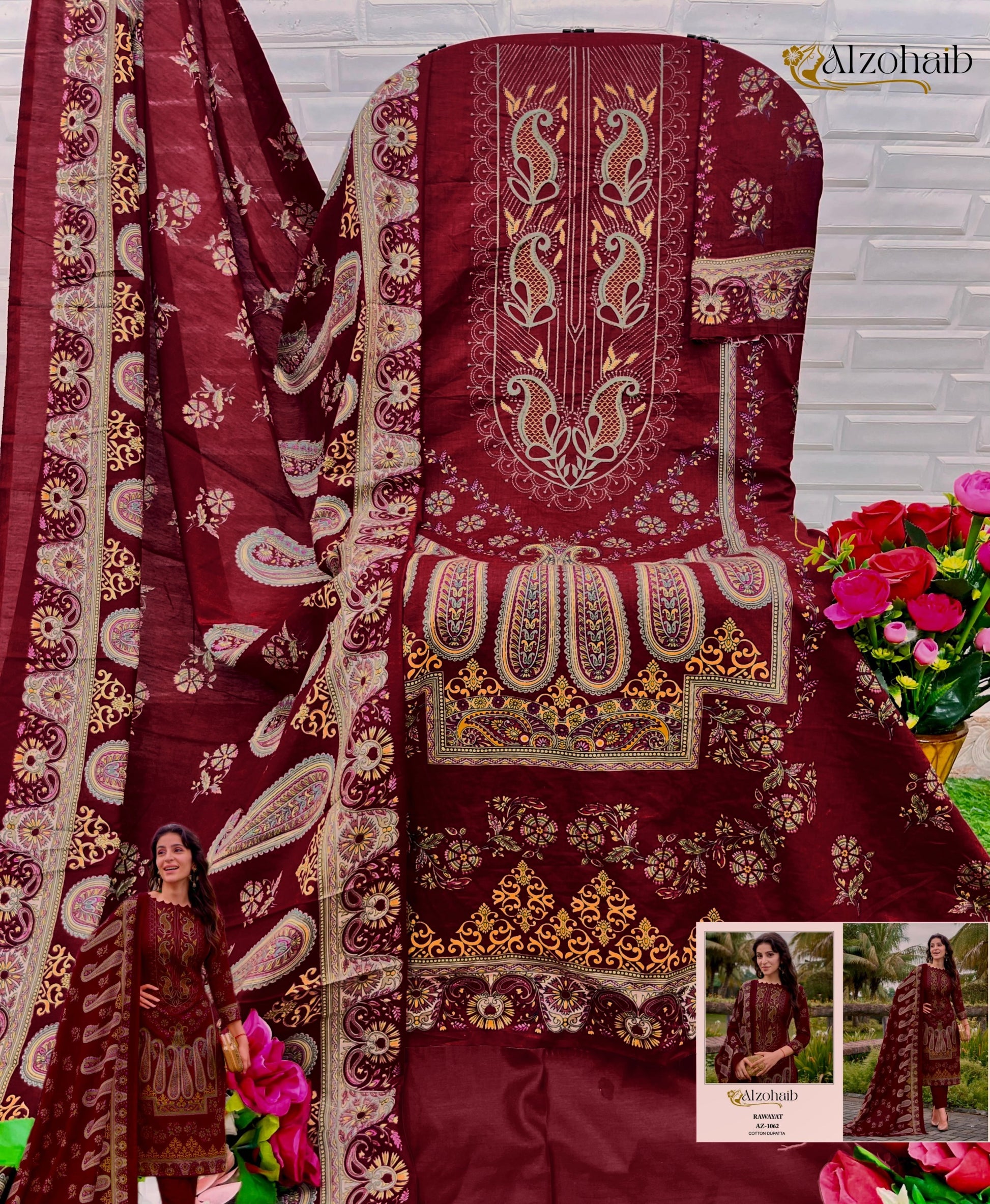 - Az-1062 Rawayat Al Zohaib Pure Cotton Pakistani Salwar Suits Dealer Ahmedabad Surat Wholesale Gujarat India Lowest Price Best Quality Buy Purchase Shipping Kurta Salwaar Kameez Also free Cash on delivery