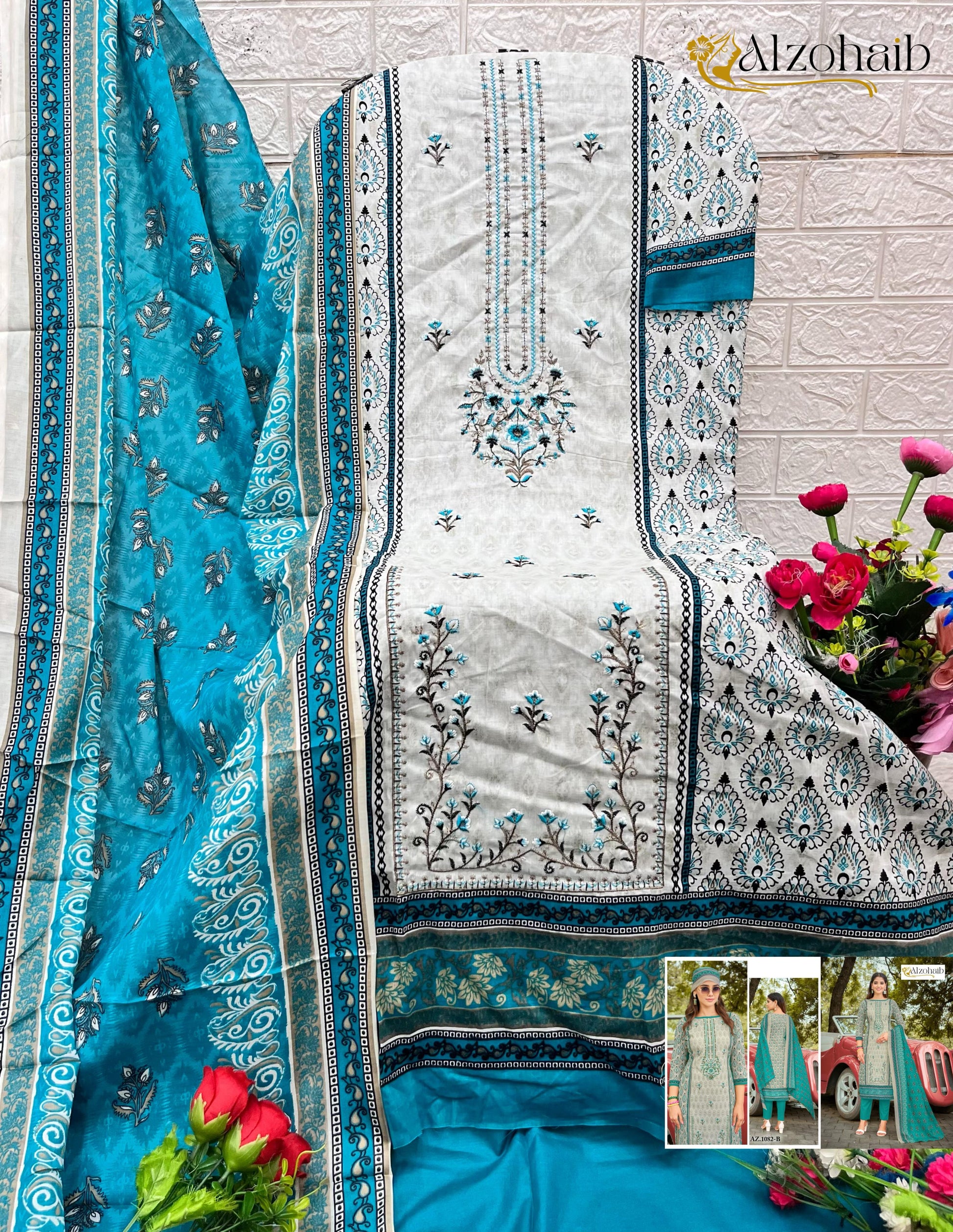- Az-1082-B Sarra Vol-1 Al Zohaib Printed Karachi Unstitched Suits Dealer Ahmedabad Surat Wholesale Gujarat India Lowest Price Best Quality Buy Purchase Shipping Kurta Salwaar Kameez Also free Cash on delivery