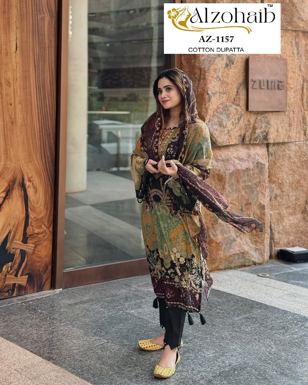 - Az-1157 Al Zohaib Printed Karachi Unstitched Suits Dealer Ahmedabad Surat Wholesale Gujarat India Lowest Price Best Quality Buy Purchase Shipping Kurta Salwaar Kameez Also free Cash on delivery