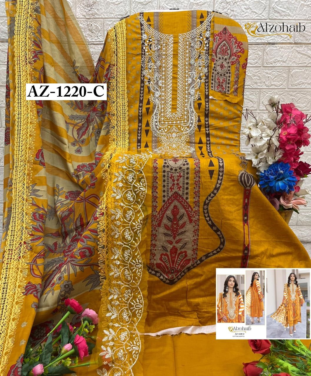 - Az-1220-C Rubina Vol 1 Al Zohaib Printed Karachi Unstitched Suits Dealer Ahmedabad Surat Wholesale Gujarat India Lowest Price Best Quality Buy Purchase Shipping Kurta Salwaar Kameez Also free Cash on delivery