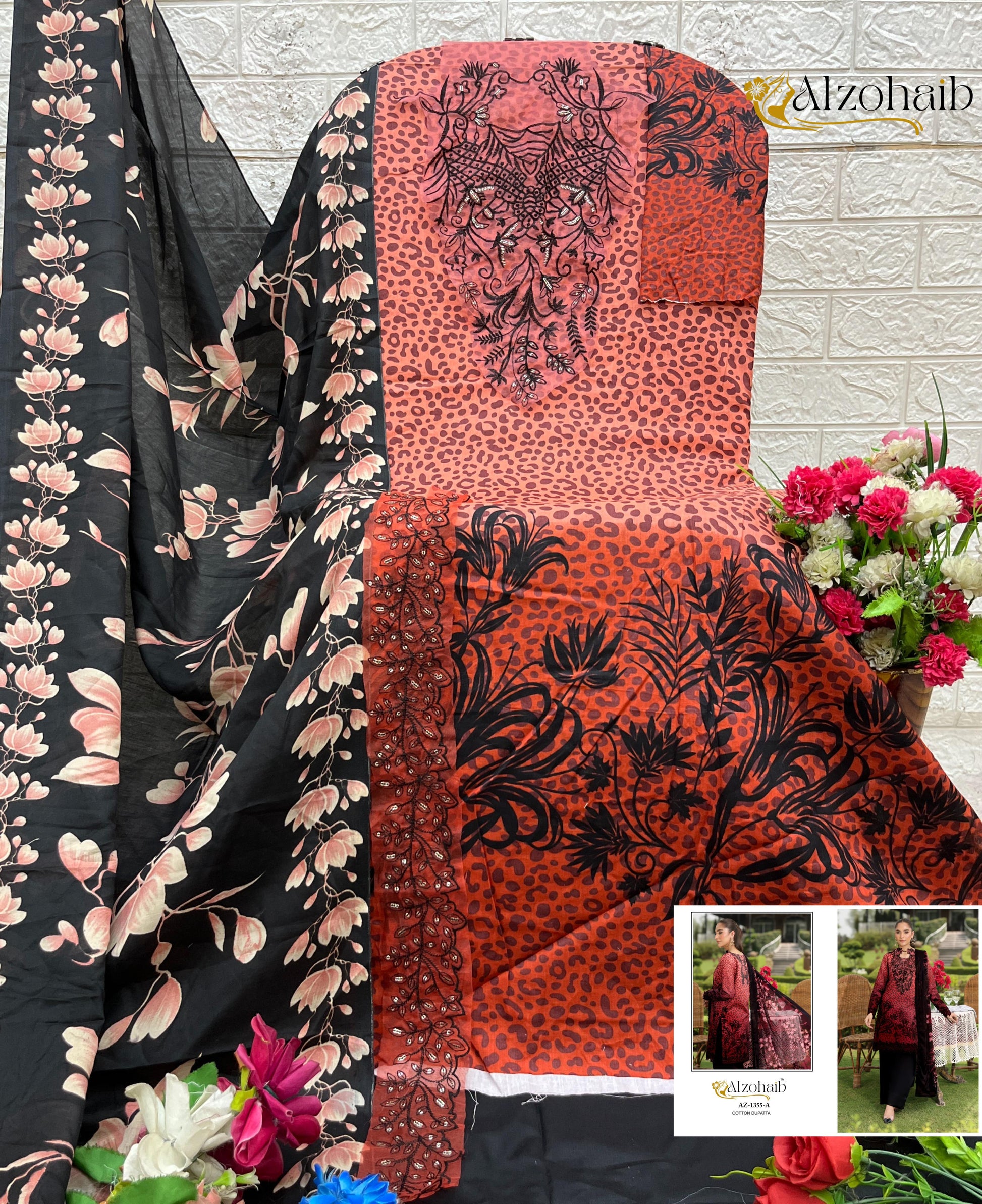 Az-1355-A Aamina Vol 1 Al Zohaib Pure Cotton Pakistani Patch Suits