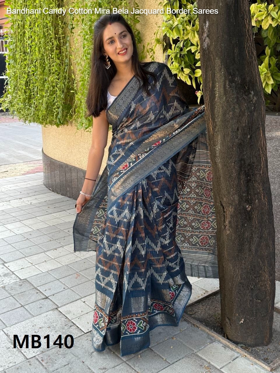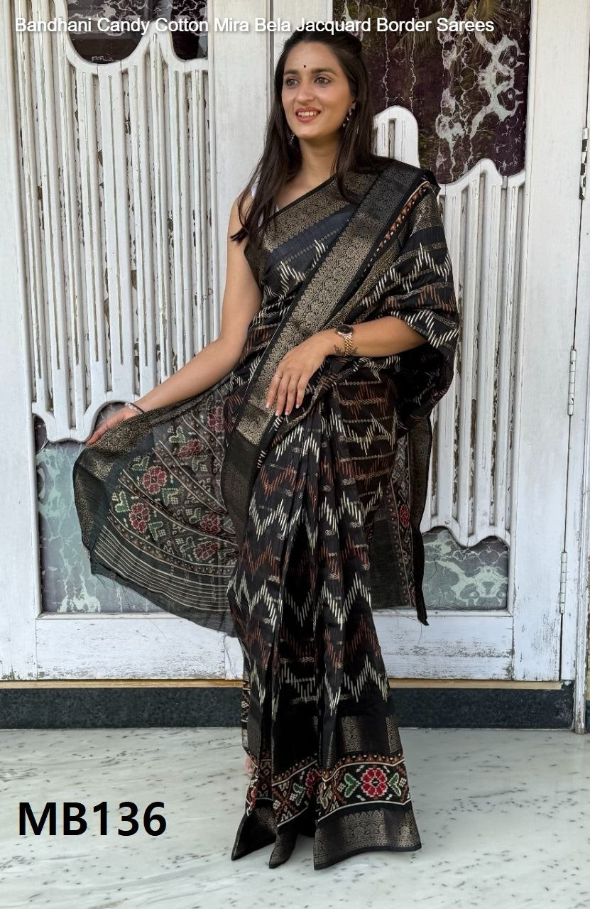 Bandhani Candy Cotton Mira Bela Jacquard Border Sarees