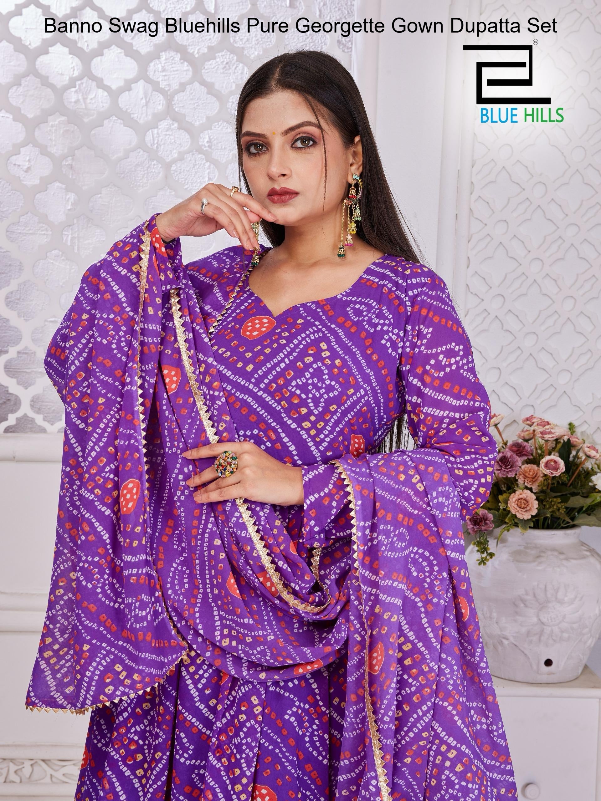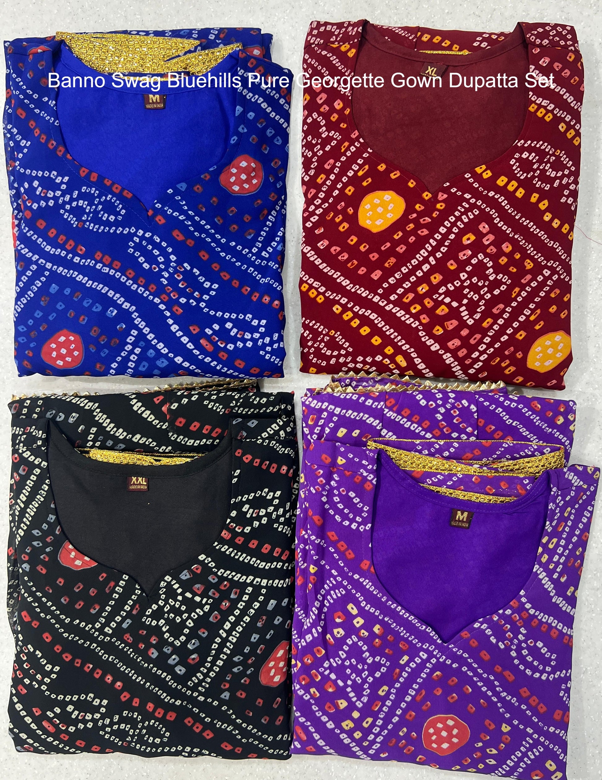 - Banno Swag Bluehills Pure Georgette Gown Dupatta Set Dealer Ahmedabad Surat Wholesale Gujarat India Lowest Price Best Quality Buy Purchase Shipping Kurta Salwaar Kameez Also free Cash on delivery