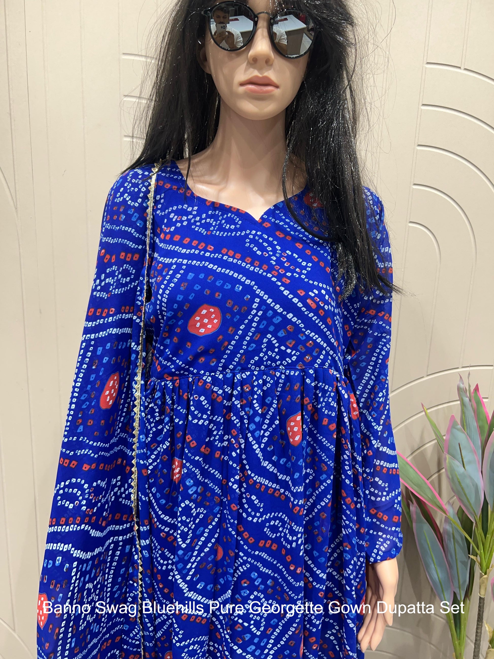 Banno Swag Bluehills Pure Georgette Gown Dupatta Set