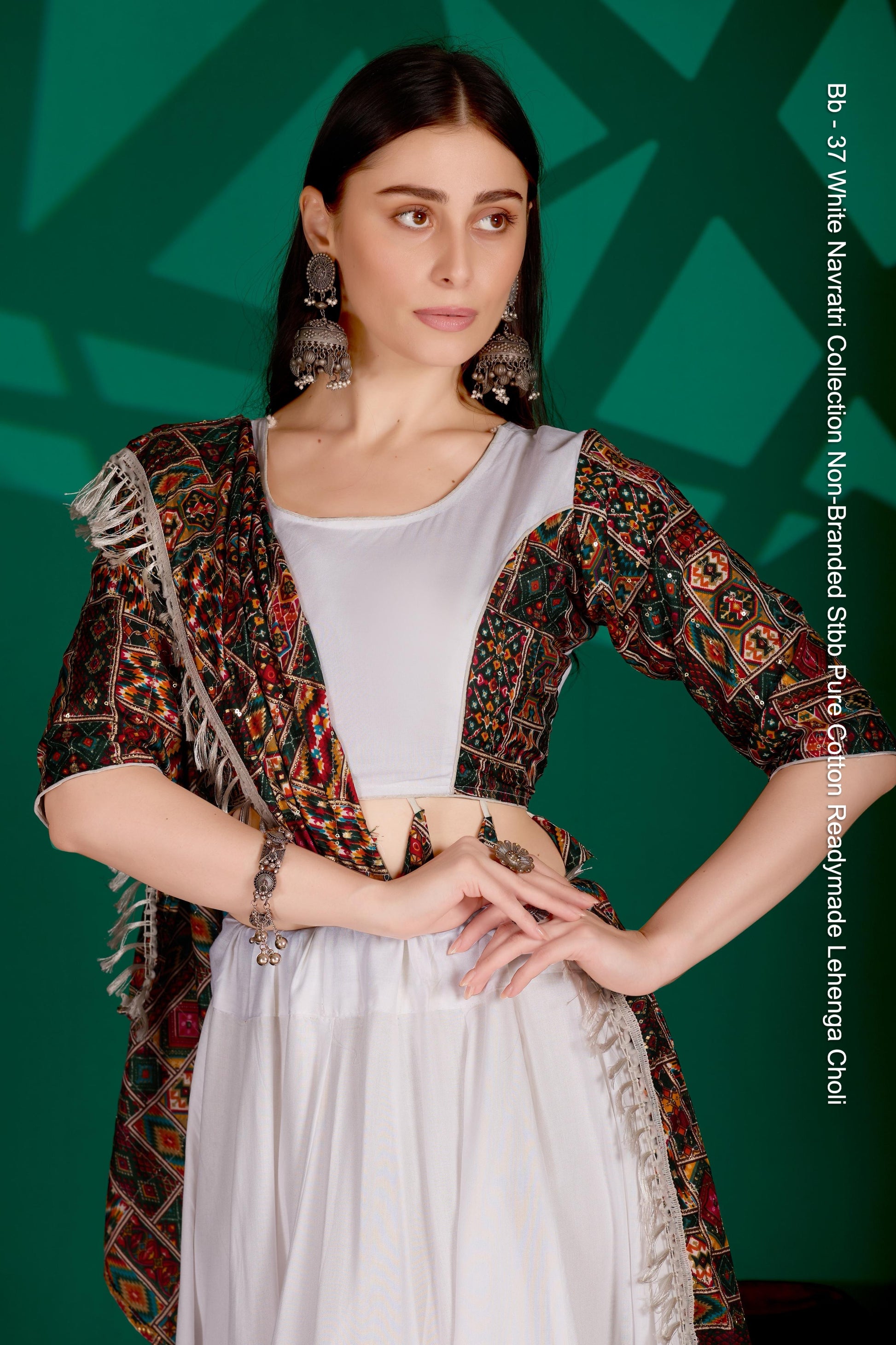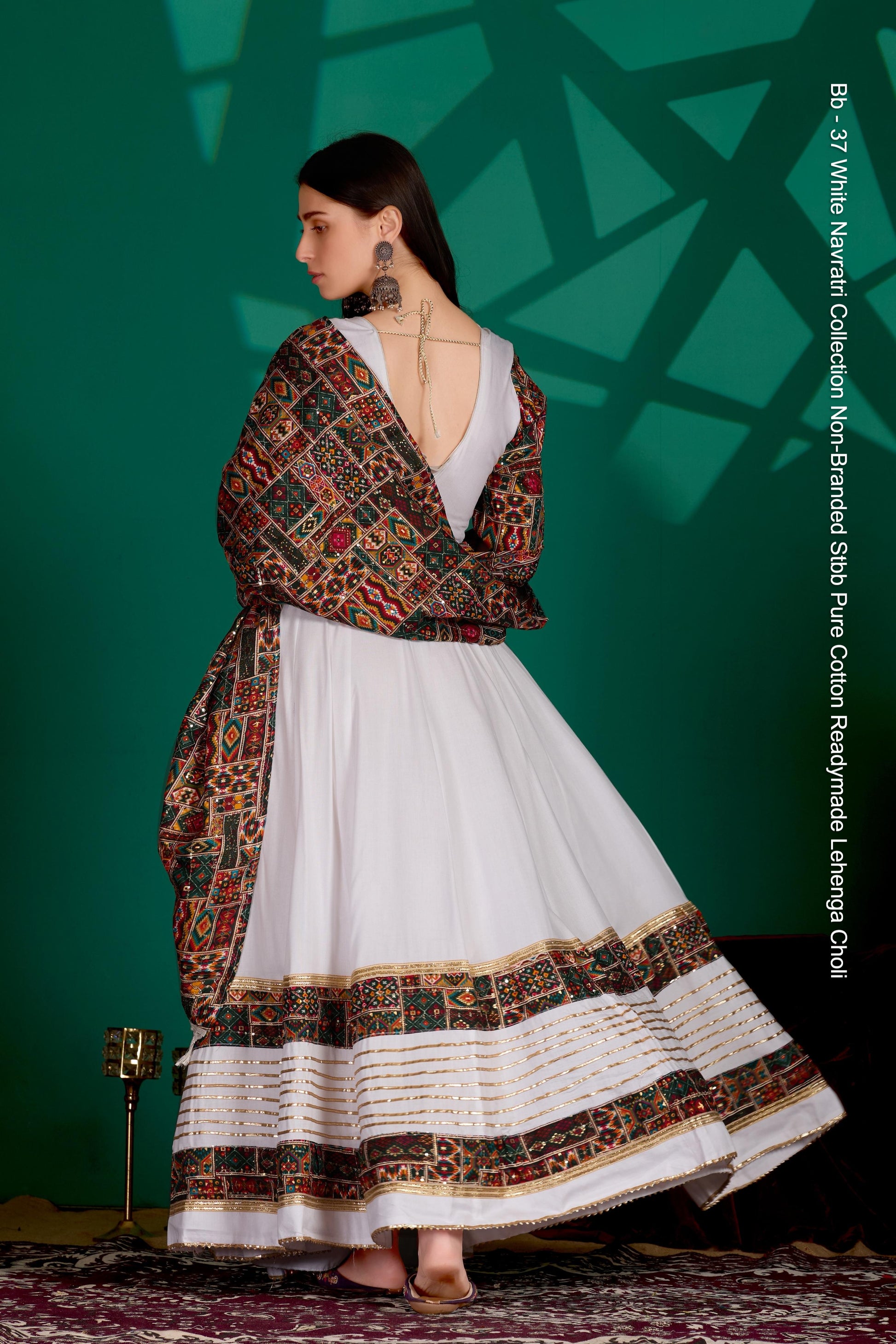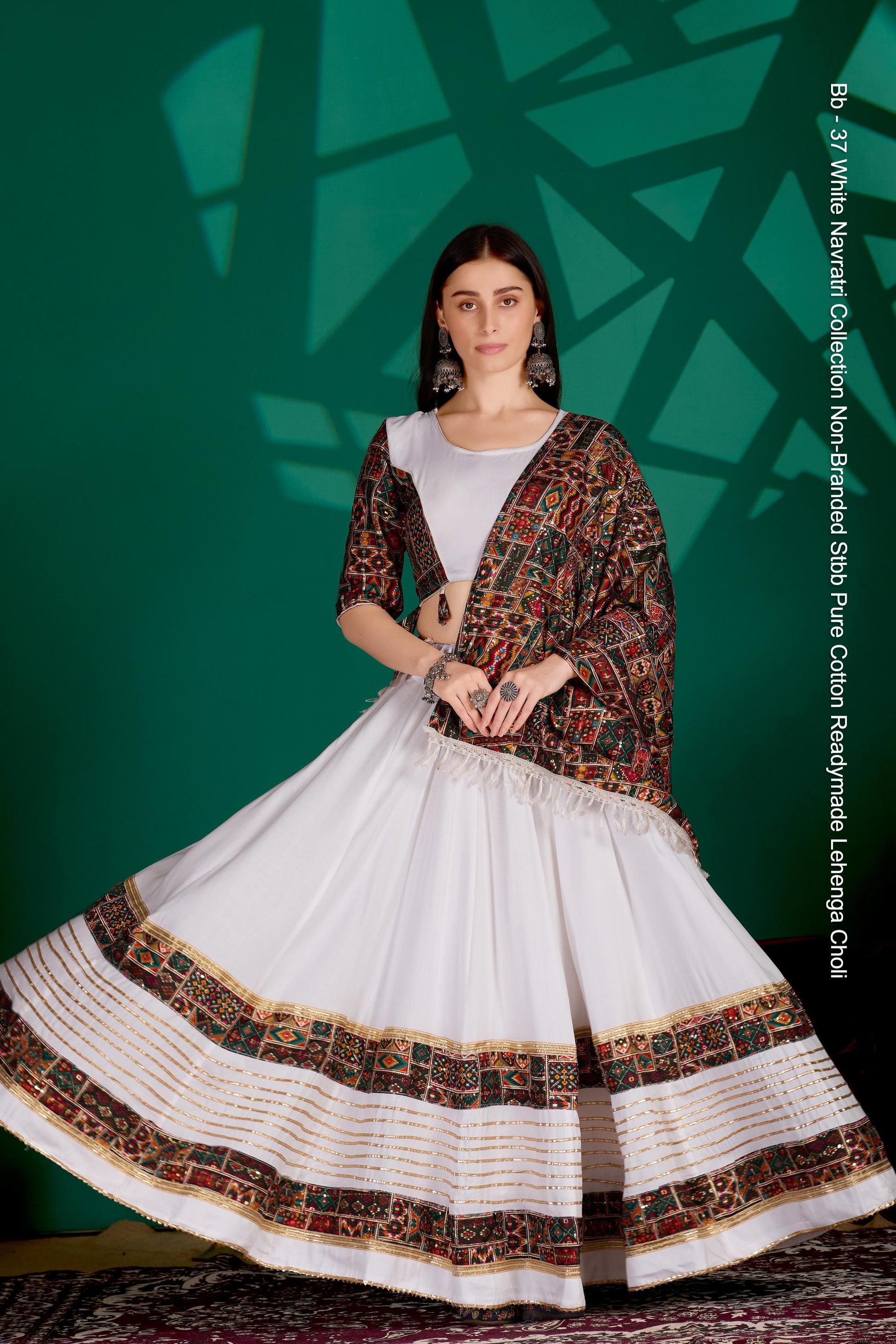 - Bb - 37 White Navratri Collection Non-Branded Stbb Pure Cotton Readymade Lehenga Choli Dealer Ahmedabad Surat Wholesale Gujarat India Lowest Price Best Quality Buy Purchase Shipping Kurta Salwaar Kameez Also free Cash on delivery