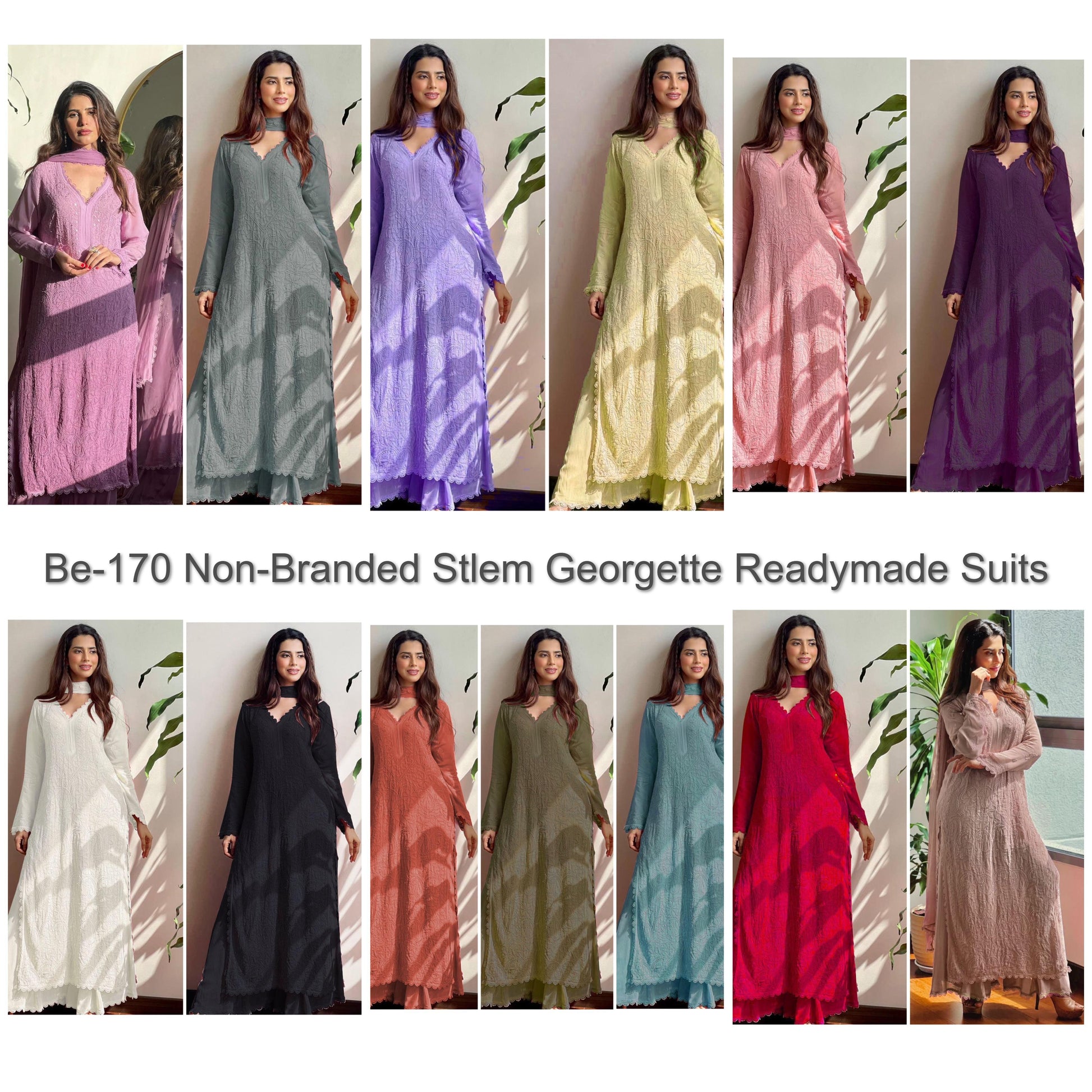 - Be-170 Non-Branded Stlem Georgette Readymade Suits Dealer Ahmedabad Surat Wholesale Gujarat India Lowest Price Best Quality Buy Purchase Shipping Kurta Salwaar Kameez Also free Cash on delivery