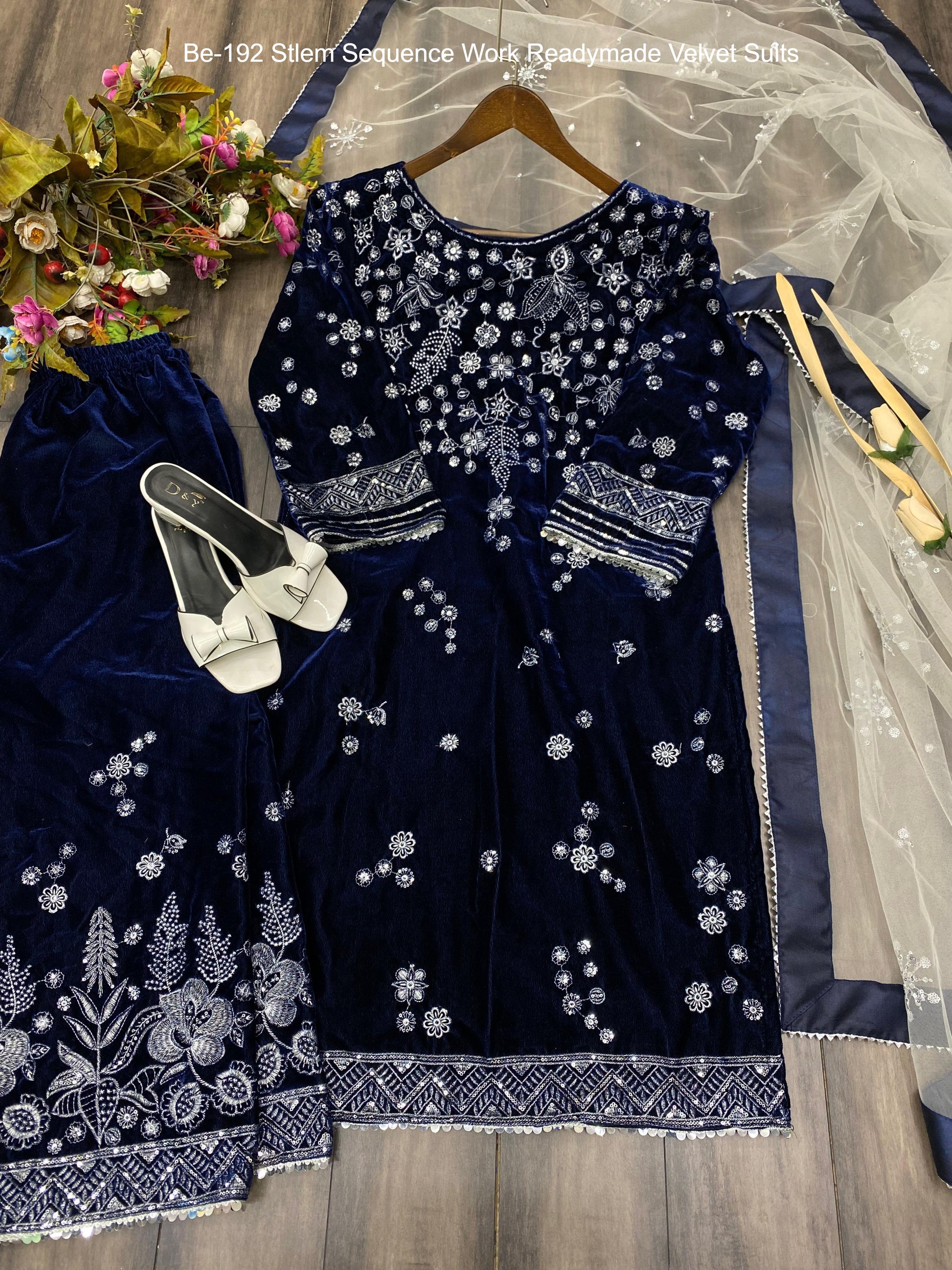 - Be-192 Stlem Sequence Work Readymade Velvet Suits Dealer Ahmedabad Surat Wholesale Gujarat India Lowest Price Best Quality Buy Purchase Shipping Kurta Salwaar Kameez Also free Cash on delivery