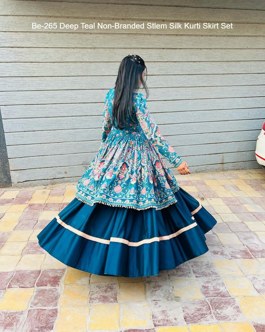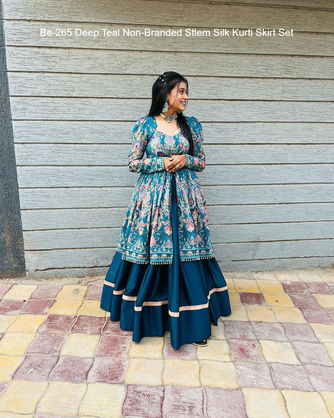 Be-265 Deep Teal Non-Branded Stlem Silk Kurti Skirt Set
