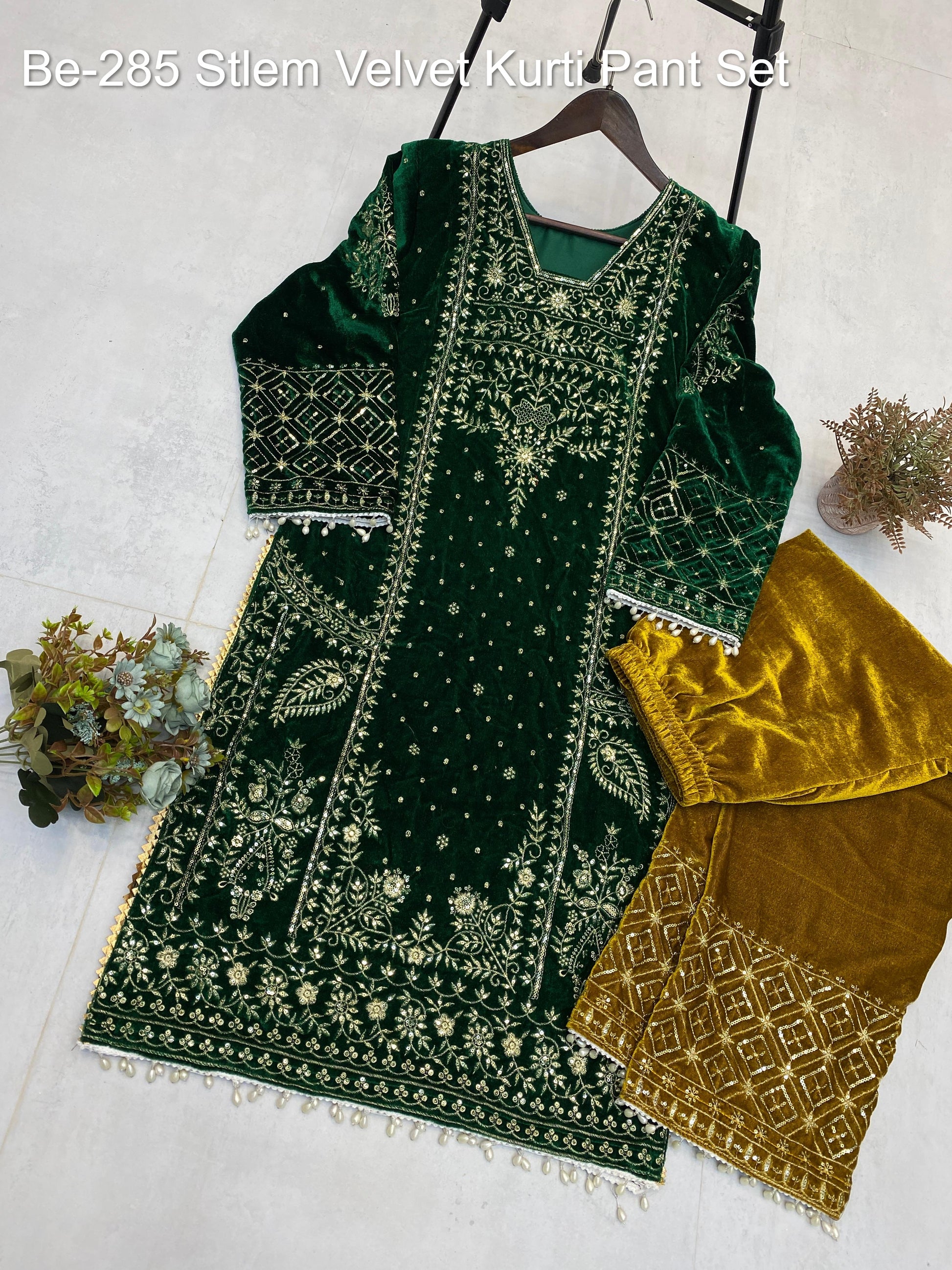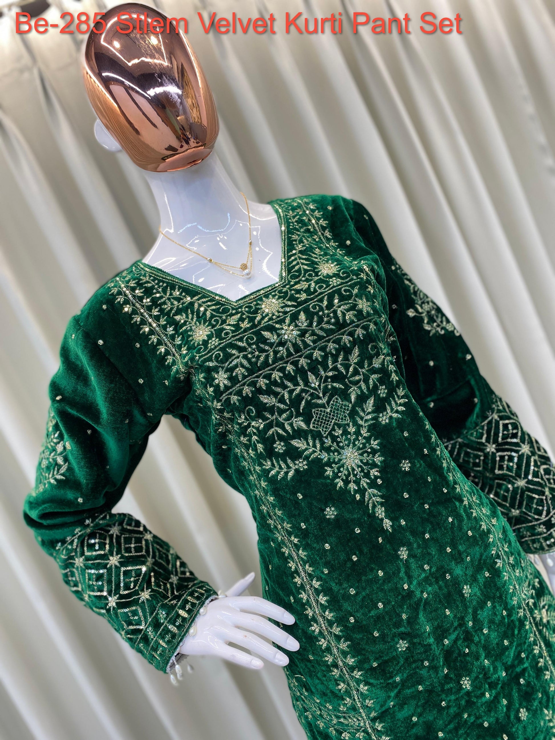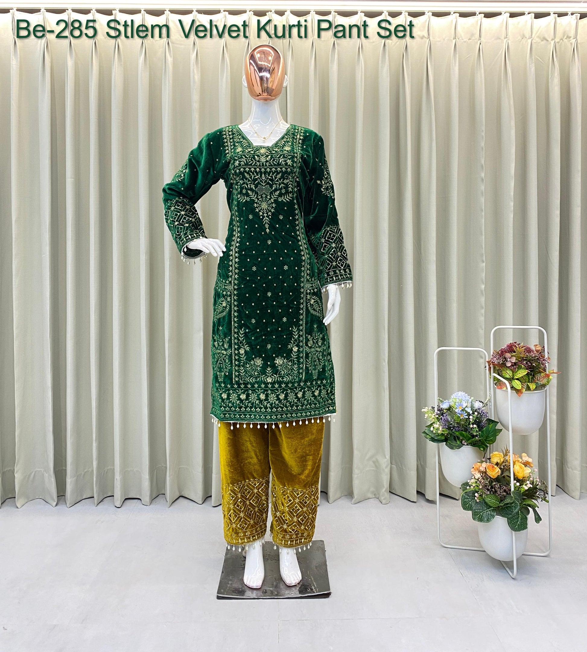 - Be-285 Stlem Velvet Kurti Pant Set Dealer Ahmedabad Surat Wholesale Gujarat India Lowest Price Best Quality Buy Purchase Shipping Kurta Salwaar Kameez Also free Cash on delivery
