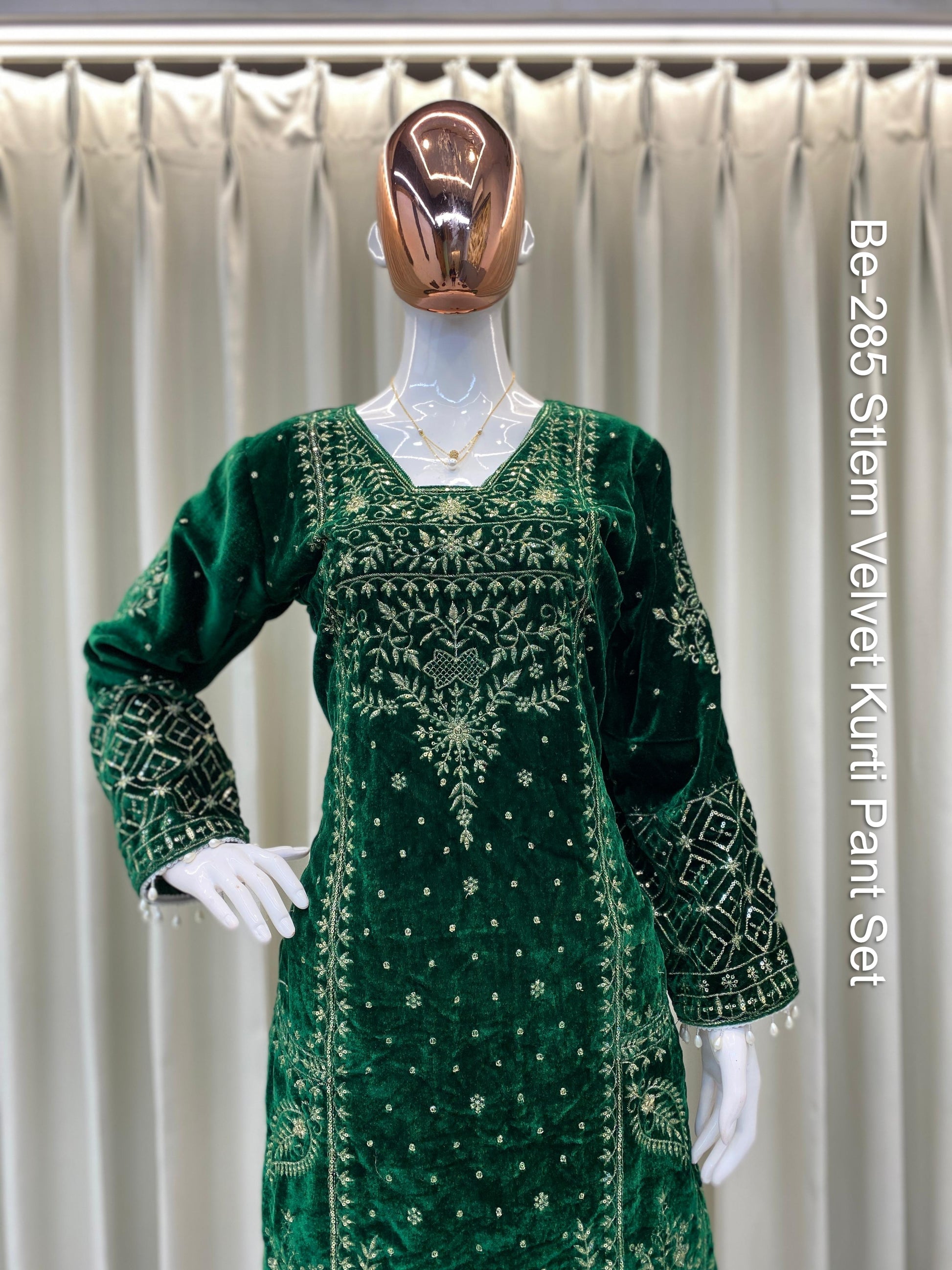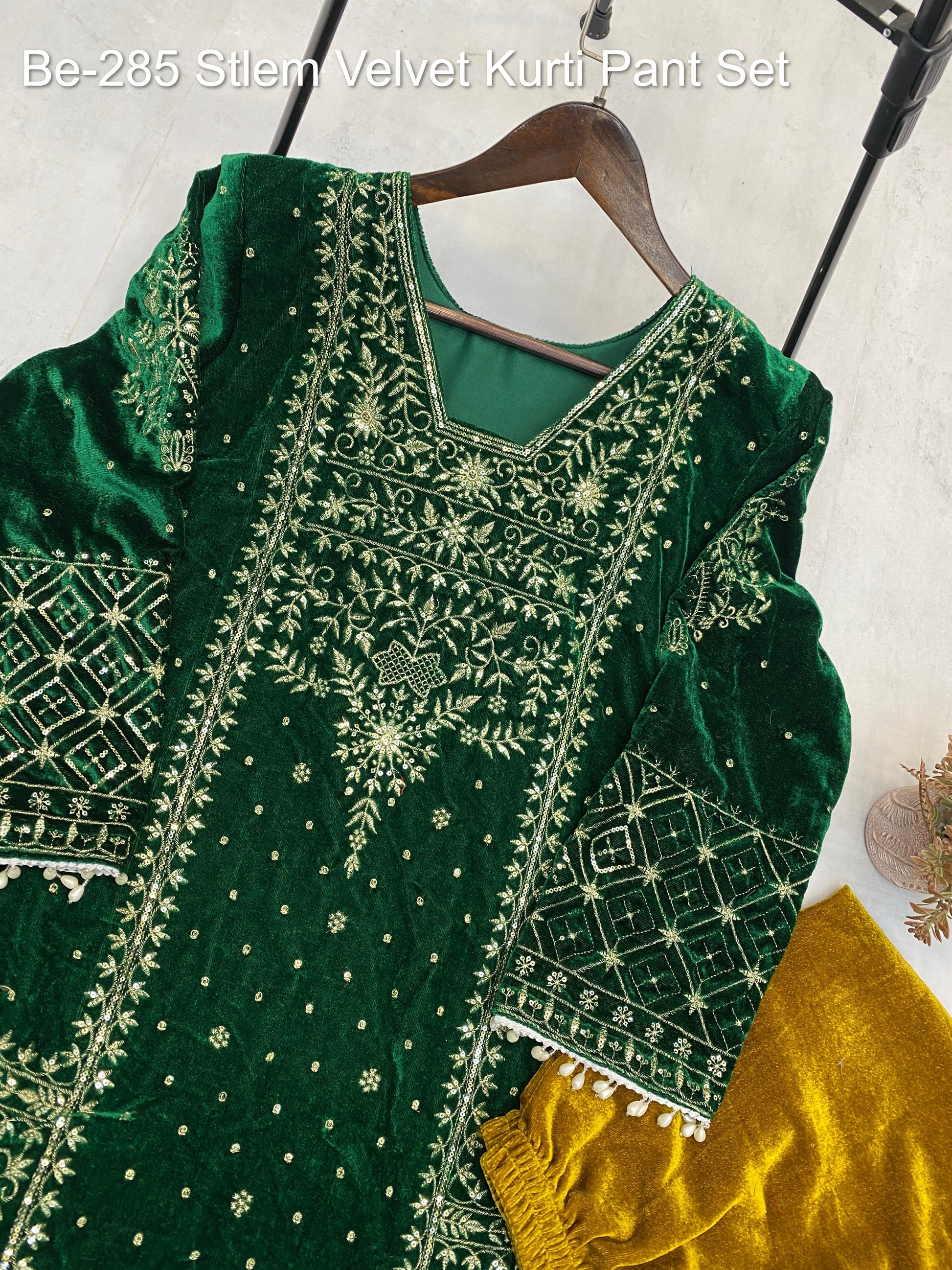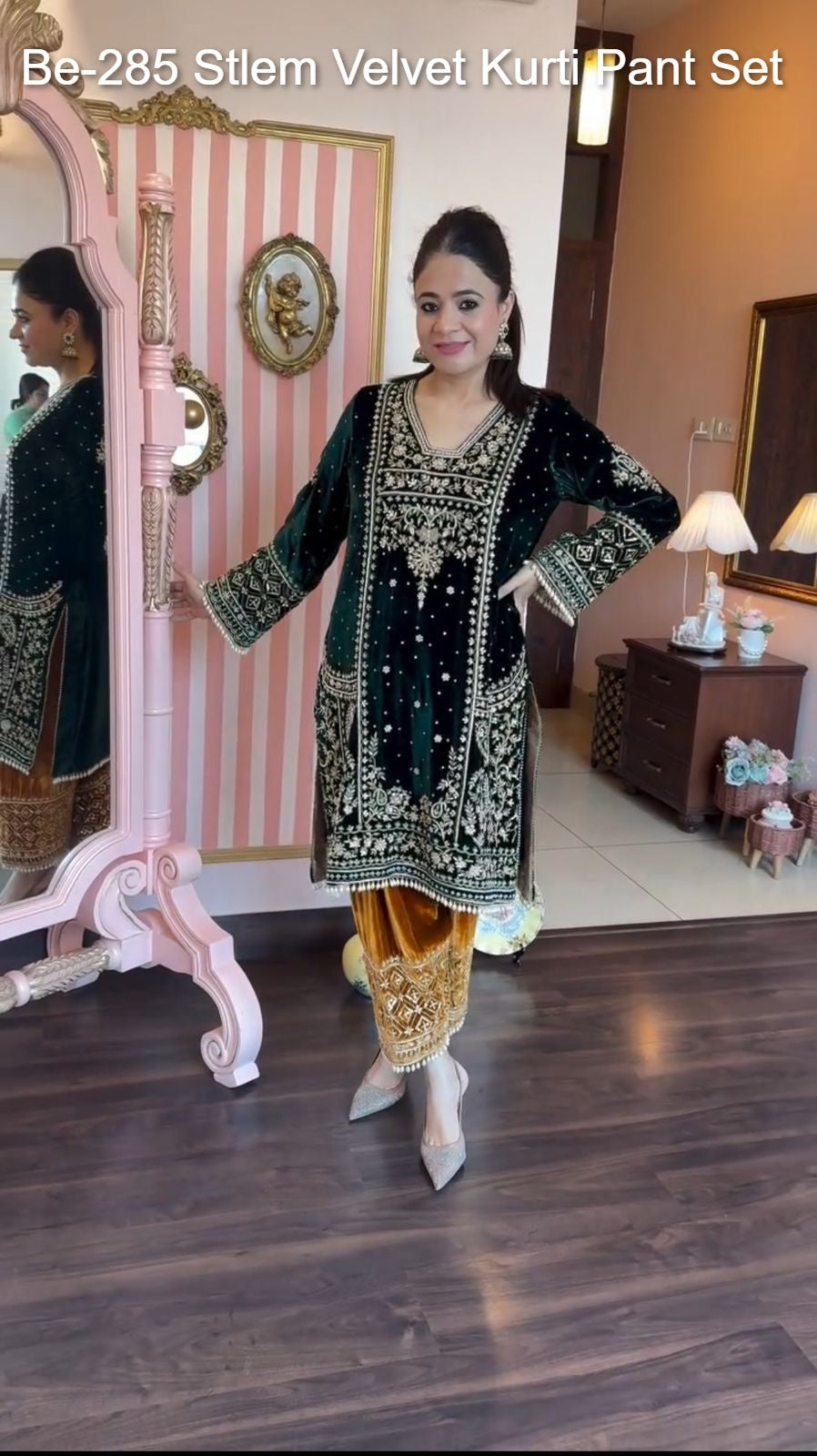 - Be-285 Stlem Velvet Kurti Pant Set Dealer Ahmedabad Surat Wholesale Gujarat India Lowest Price Best Quality Buy Purchase Shipping Kurta Salwaar Kameez Also free Cash on delivery
