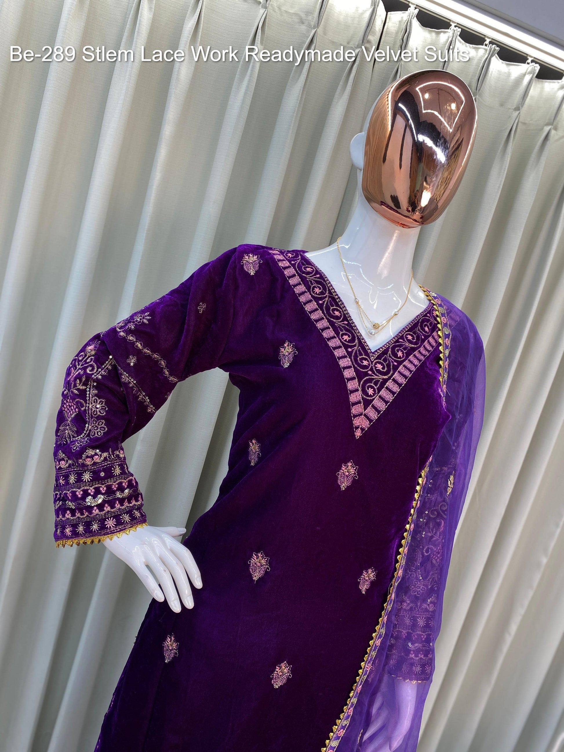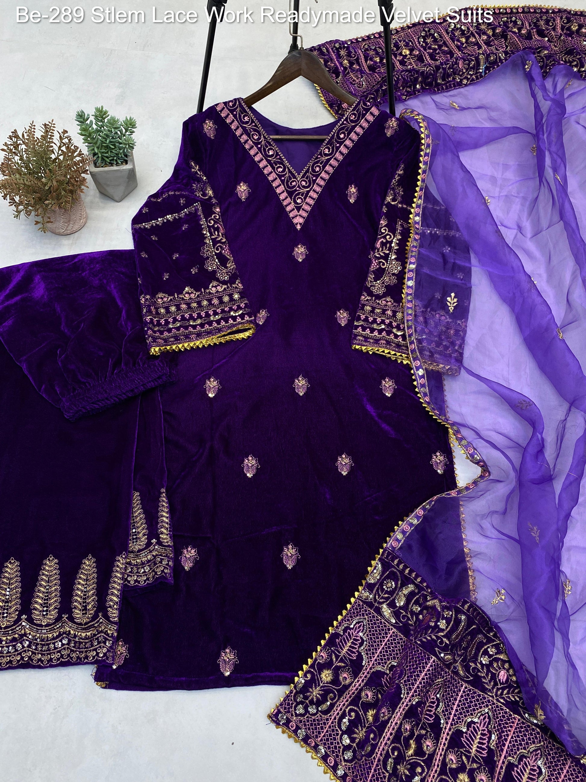 Be-289 Stlem Lace Work Readymade Velvet Suits