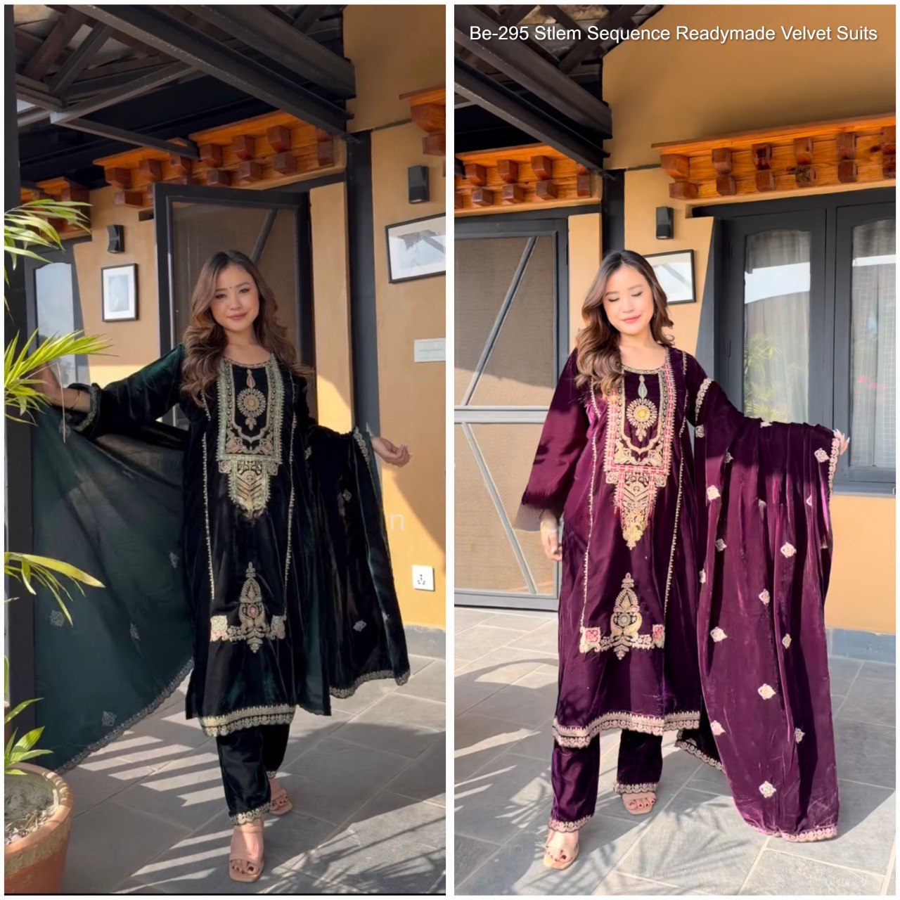 - Be-295 Stlem Sequence Readymade Velvet Suits Dealer Ahmedabad Surat Wholesale Gujarat India Lowest Price Best Quality Buy Purchase Shipping Kurta Salwaar Kameez Also free Cash on delivery