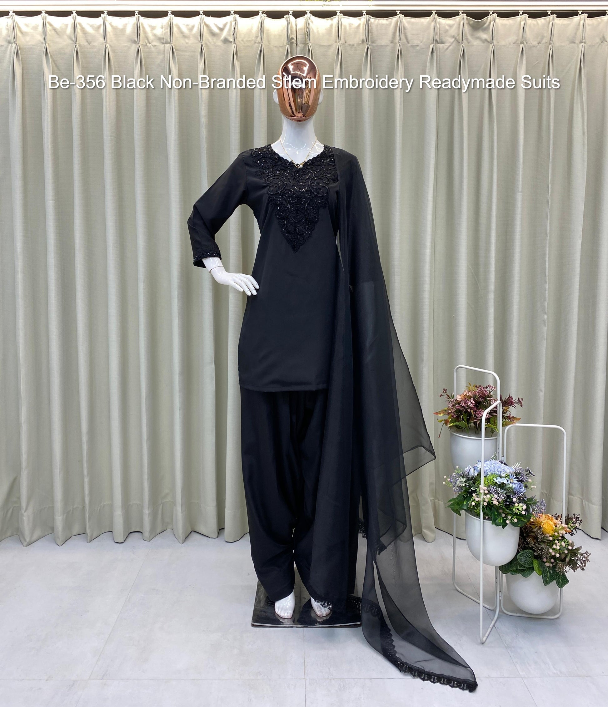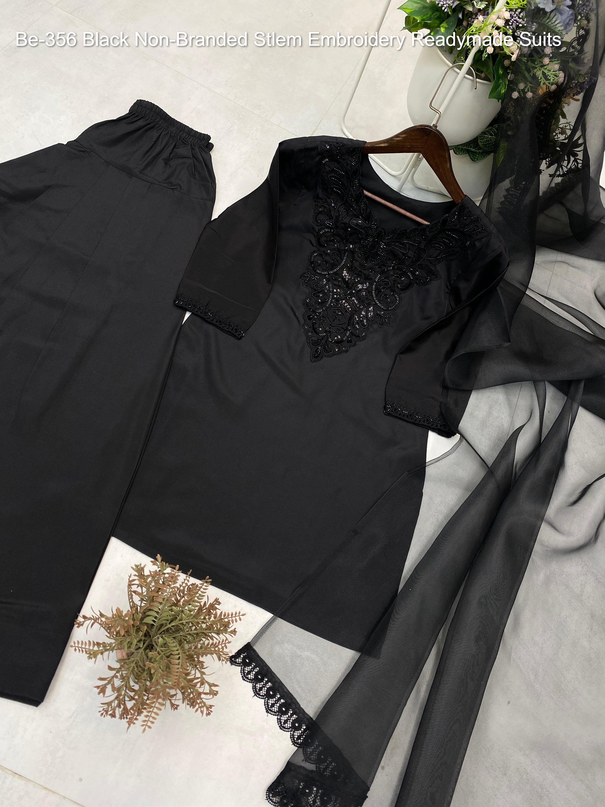 Be-356 Black Non-Branded Stlem Embroidery Readymade Suits