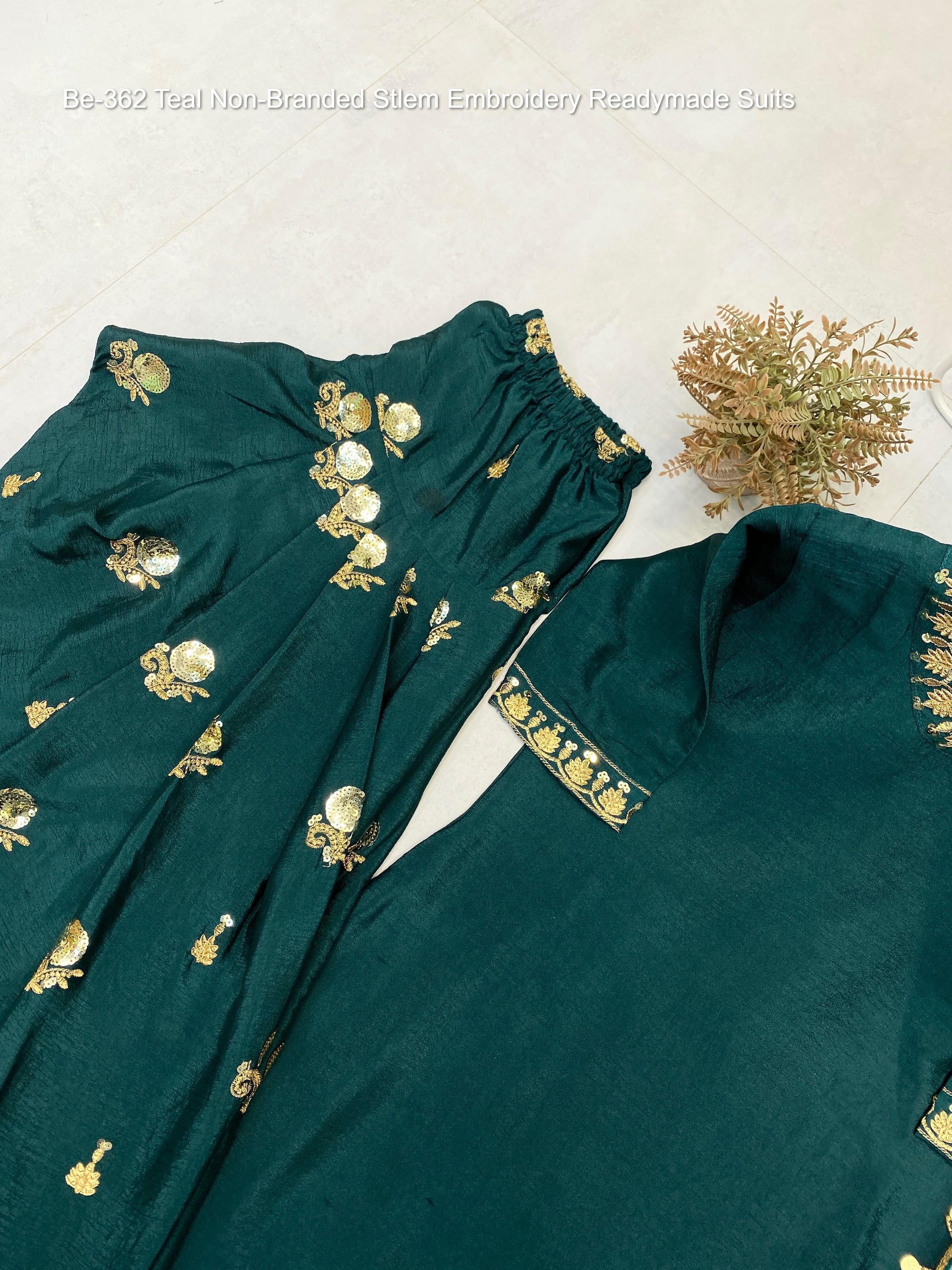 Be-362 Teal Non-Branded Stlem Embroidery Readymade Suits