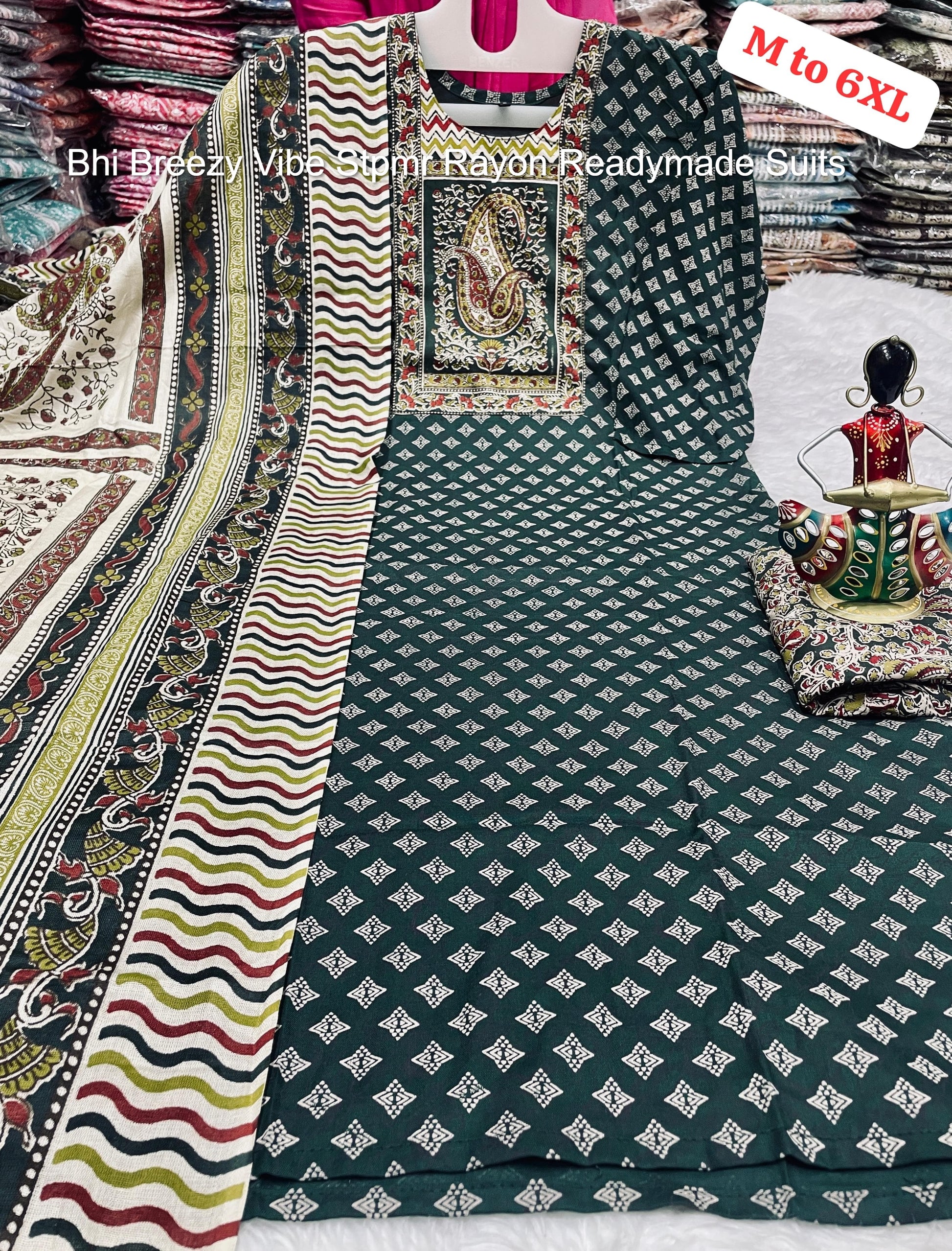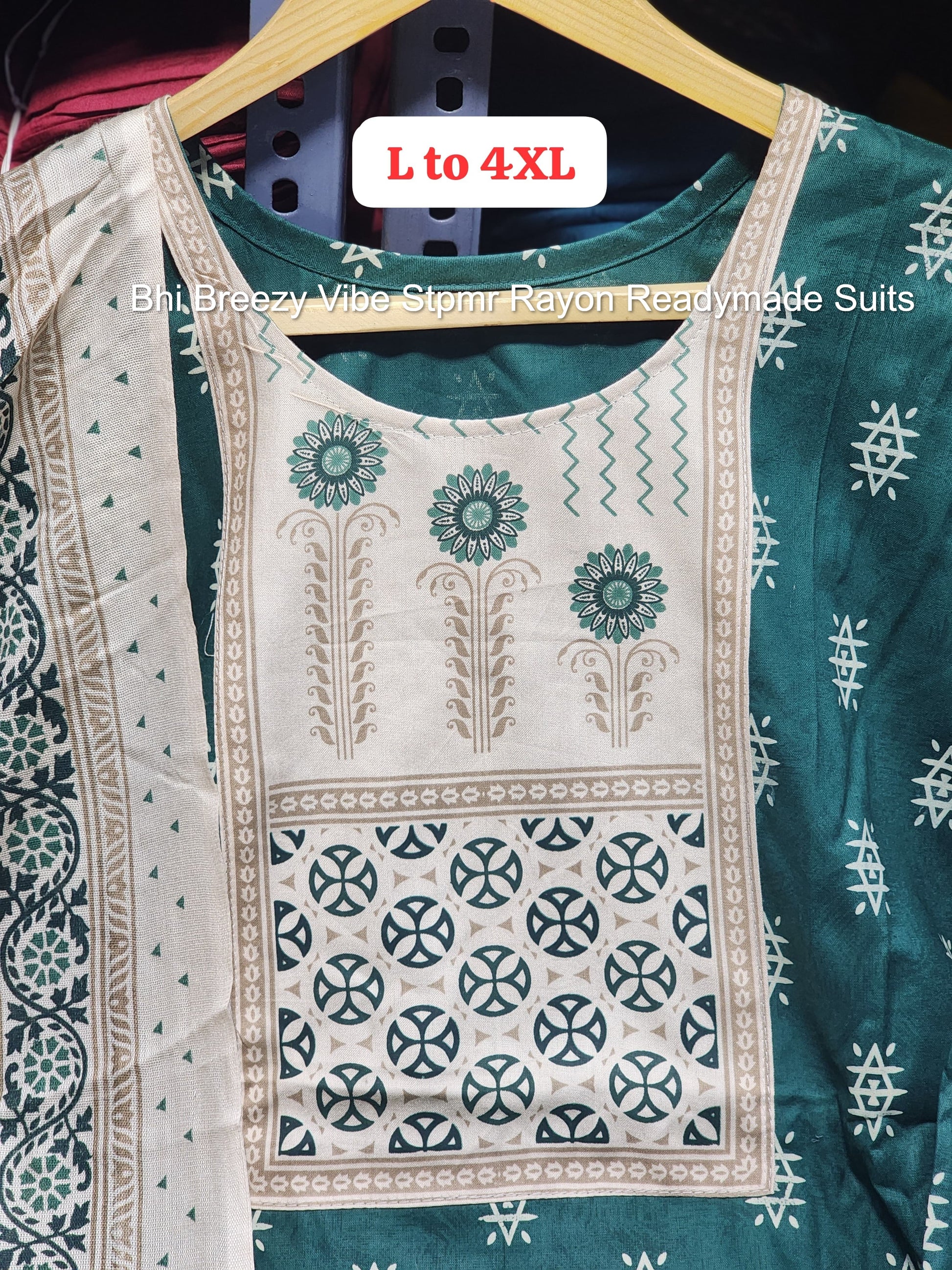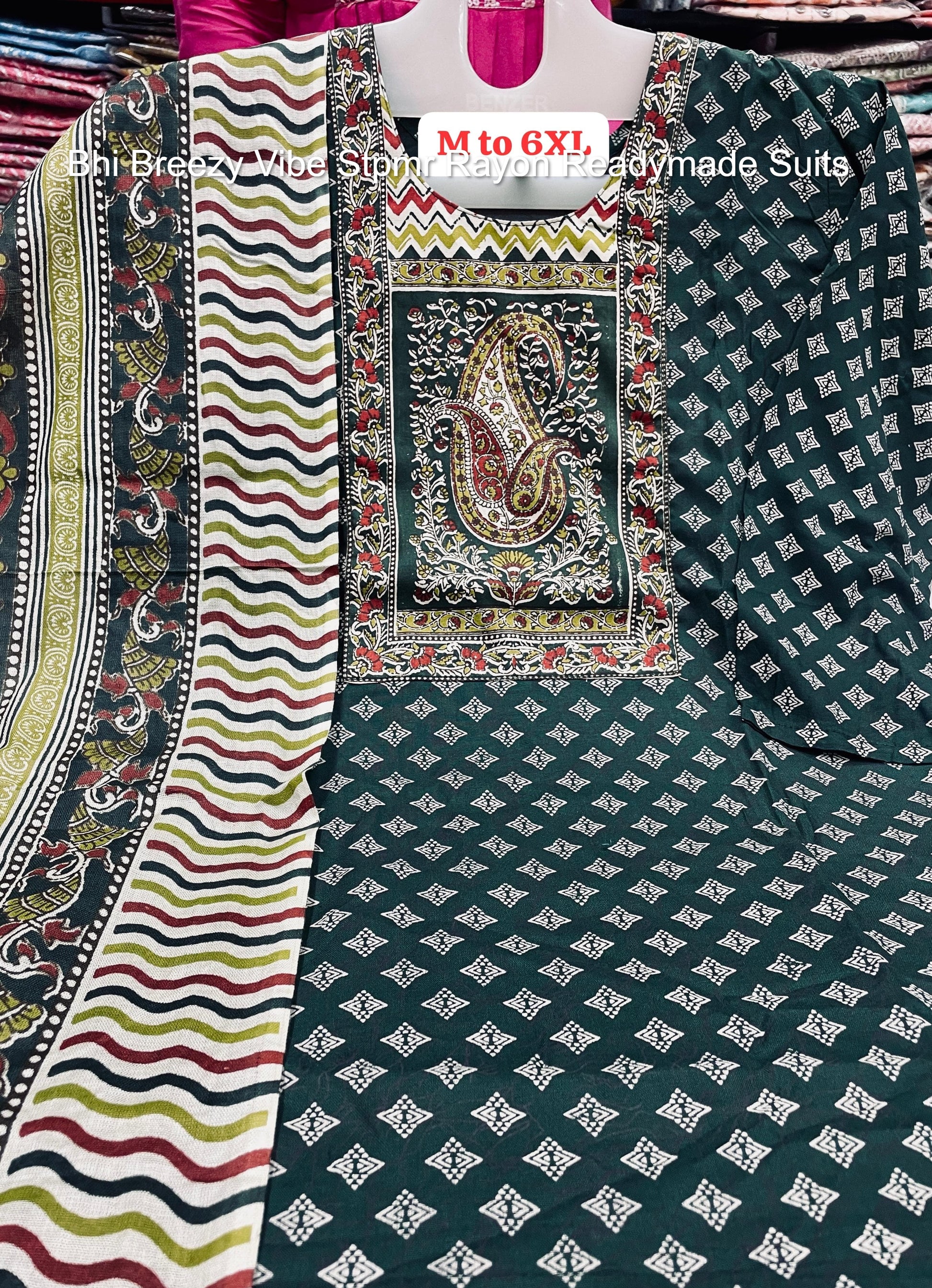 - Fabric Detail: Top : Pure Cotton Rayon Block Printed Neck , Bottom : Pure Cotton Rayon , Dupatta : Cotton Rayon , Size : M, L, Xl, 2Xl, 3Xl, 4Xl, 5Xl, 6Xl