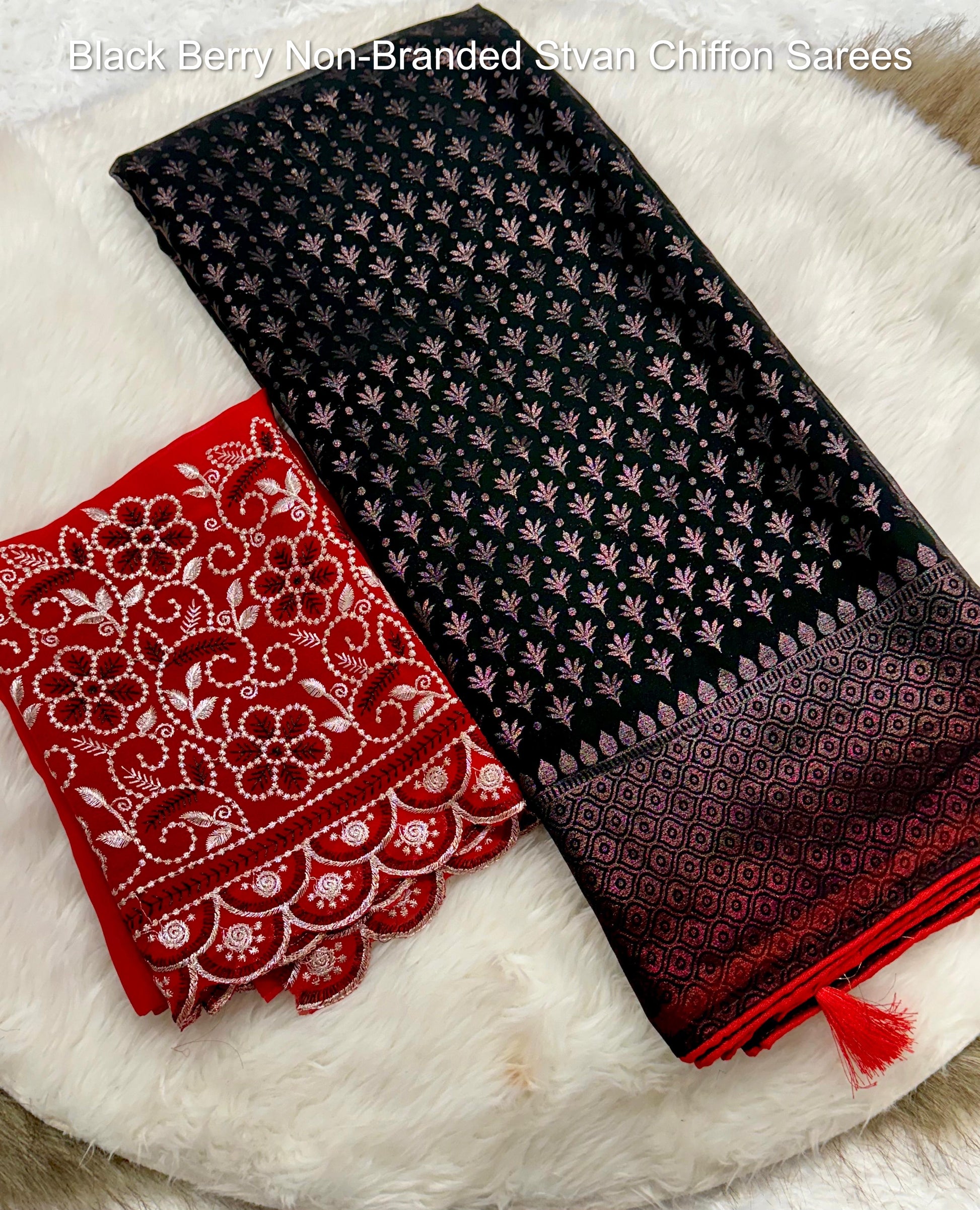 Black Berry Non-Branded Stvan Chiffon Sarees