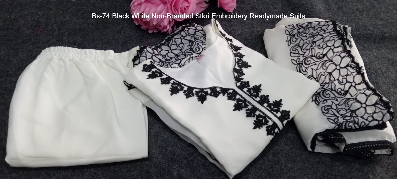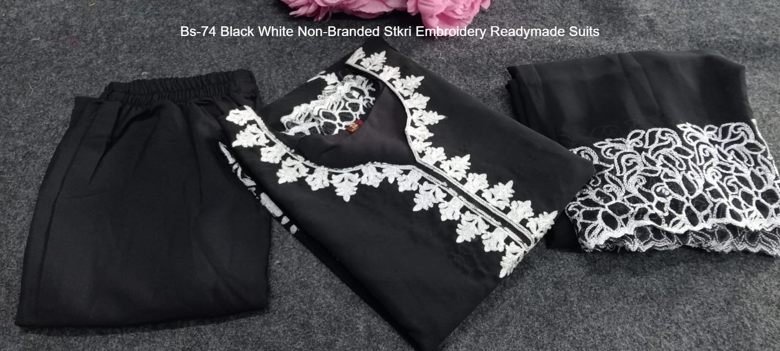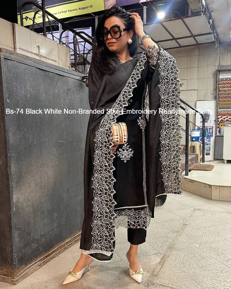 Bs-74 Black White Non-Branded Stkri Embroidery Readymade Suits