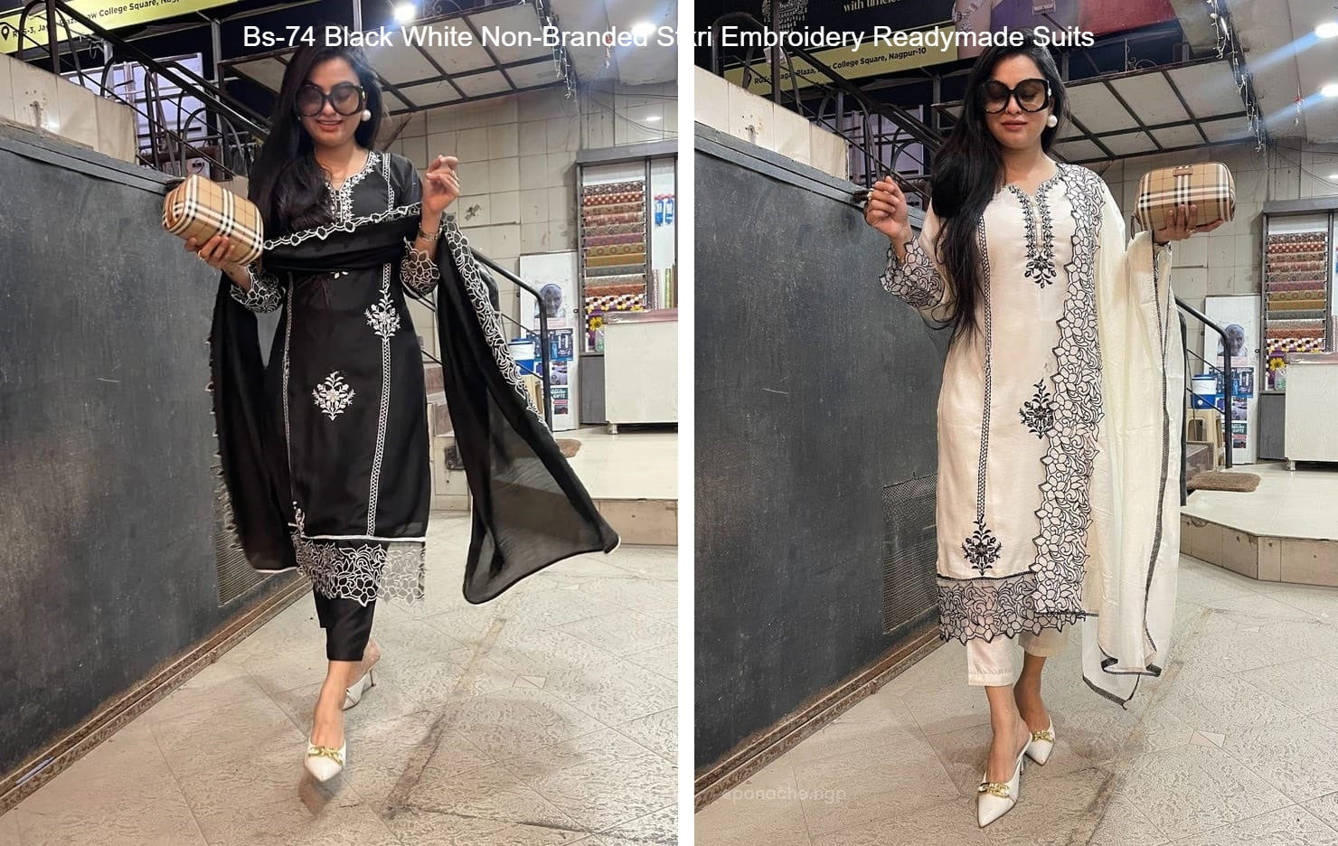 - Bs-74 Black White Non-Branded Stkri Embroidery Readymade Suits Dealer Ahmedabad Surat Wholesale Gujarat India Lowest Price Best Quality Buy Purchase Shipping Kurta Salwaar Kameez Also free Cash on delivery