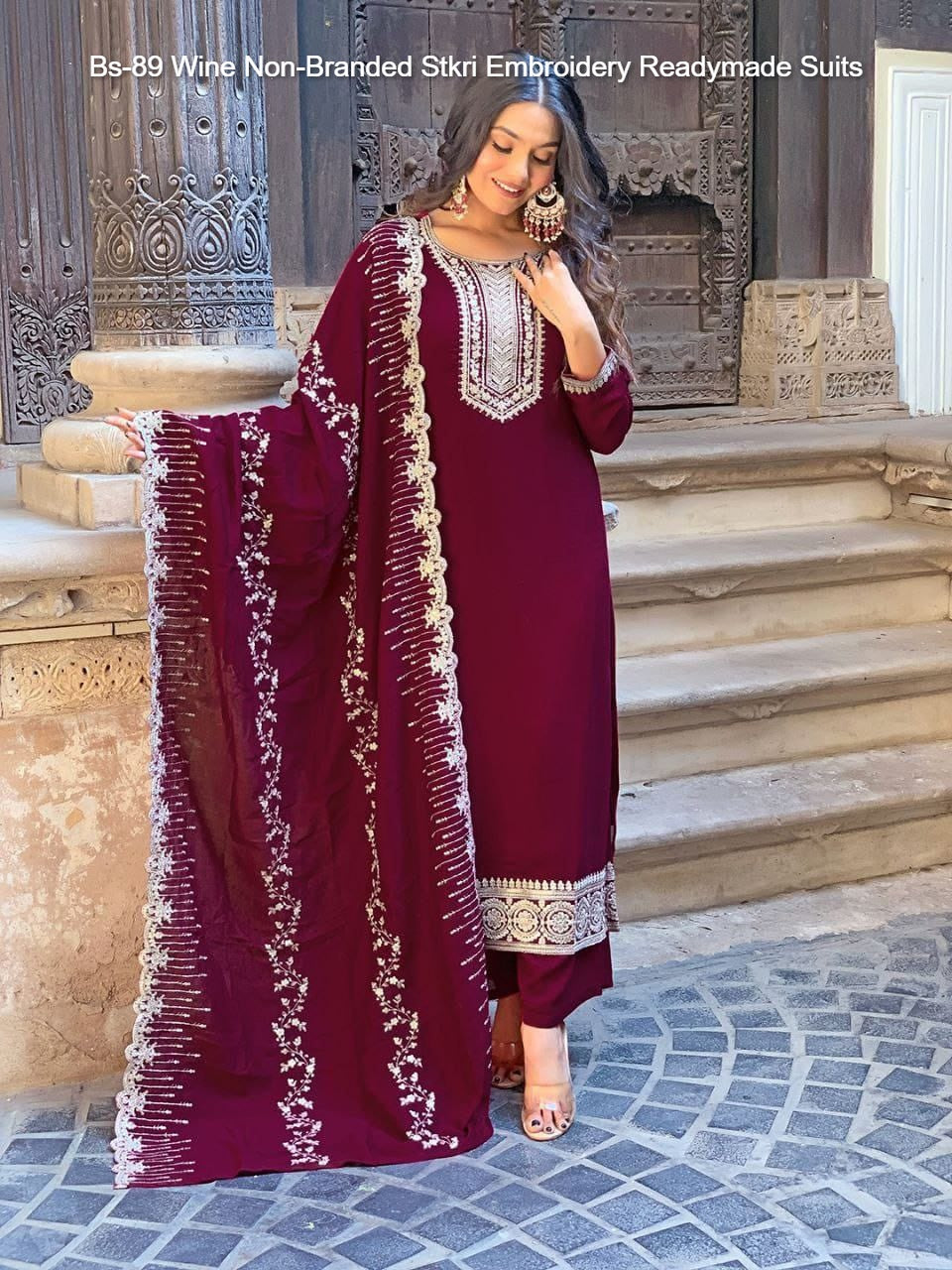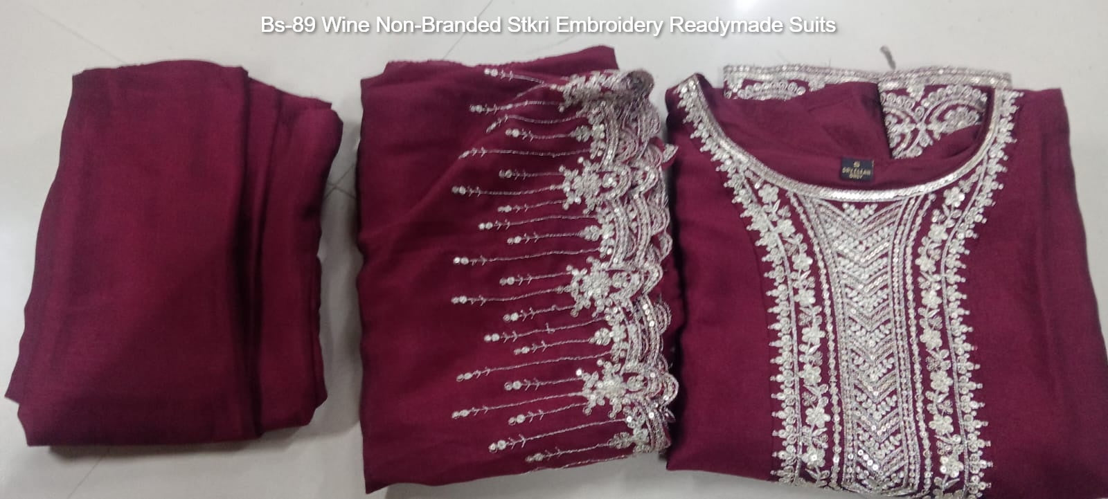 Bs-89 Wine Non-Branded Stkri Embroidery Readymade Suits