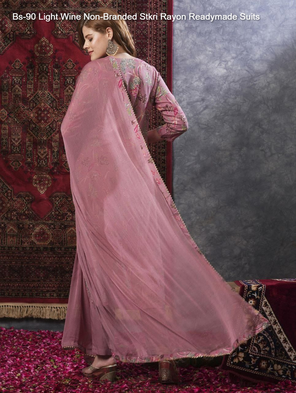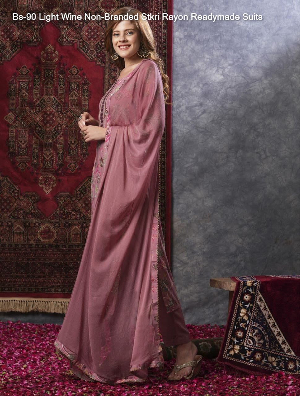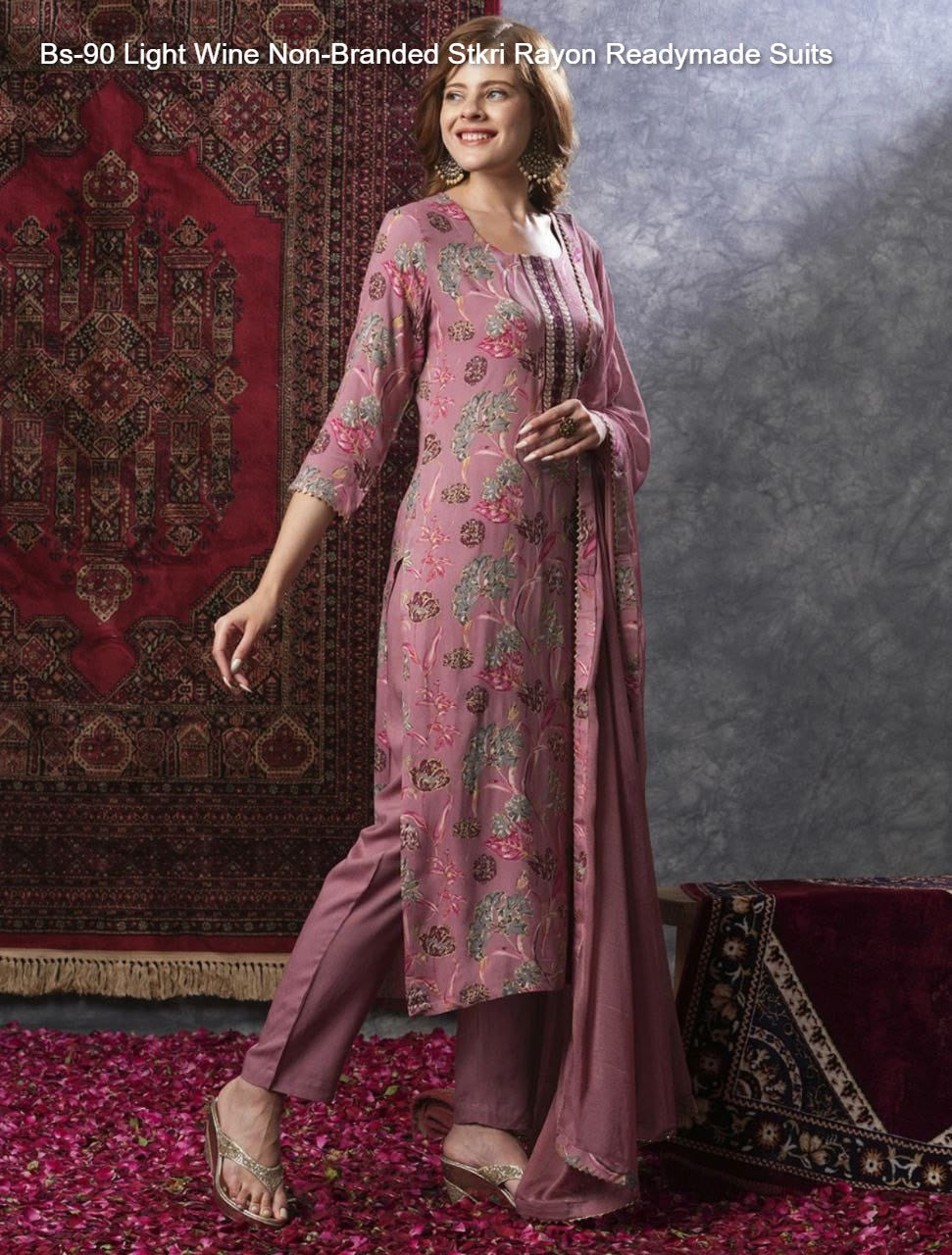 Bs-90 Light Wine Non-Branded Stkri Rayon Readymade Suits