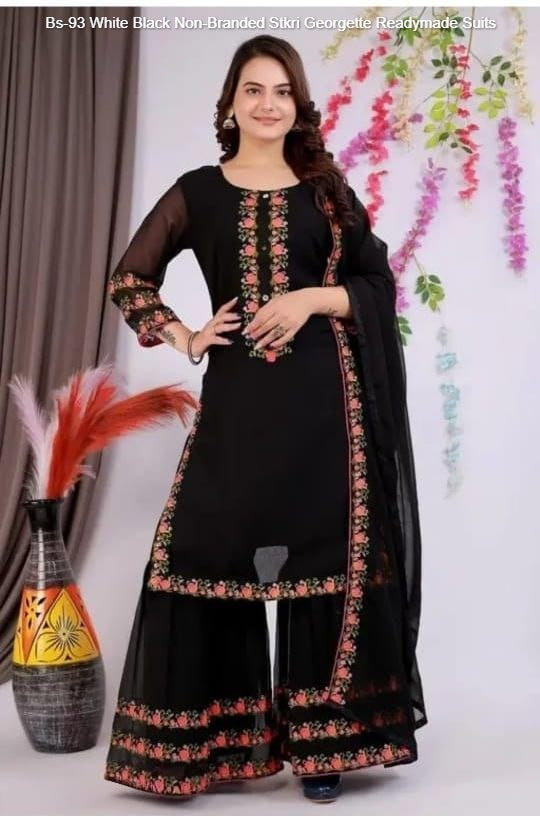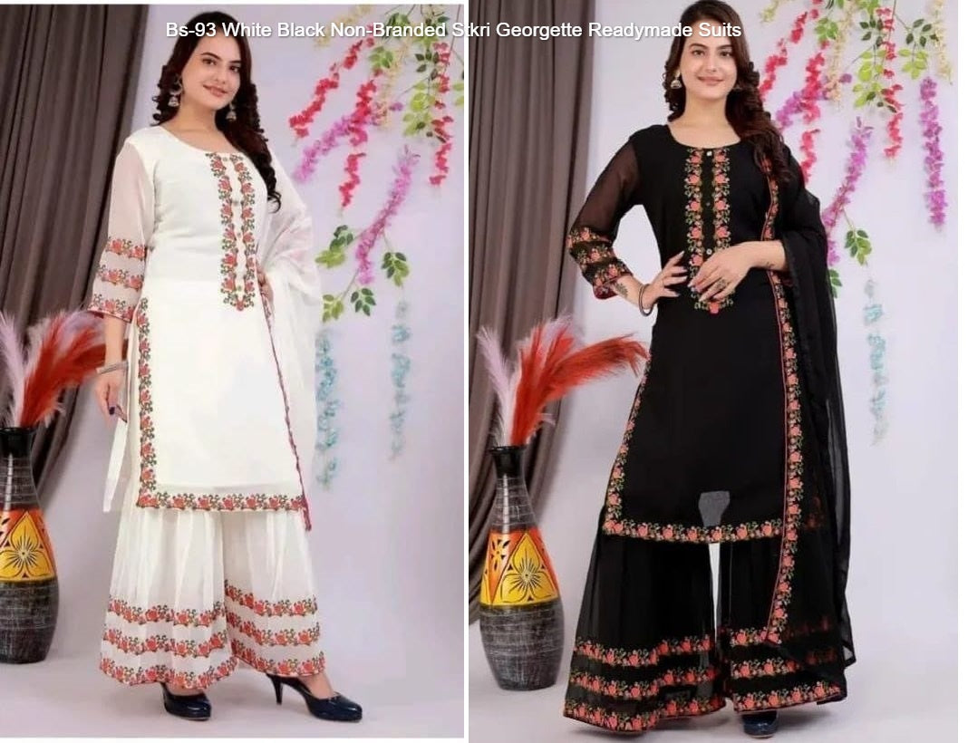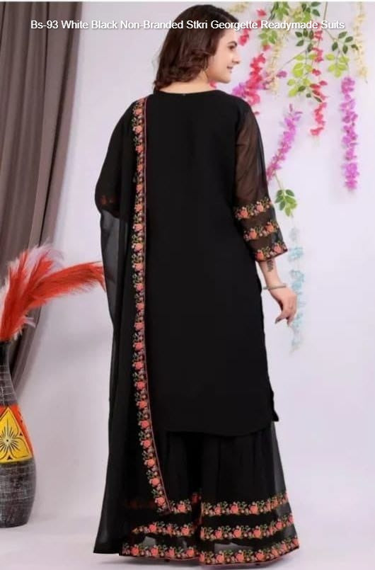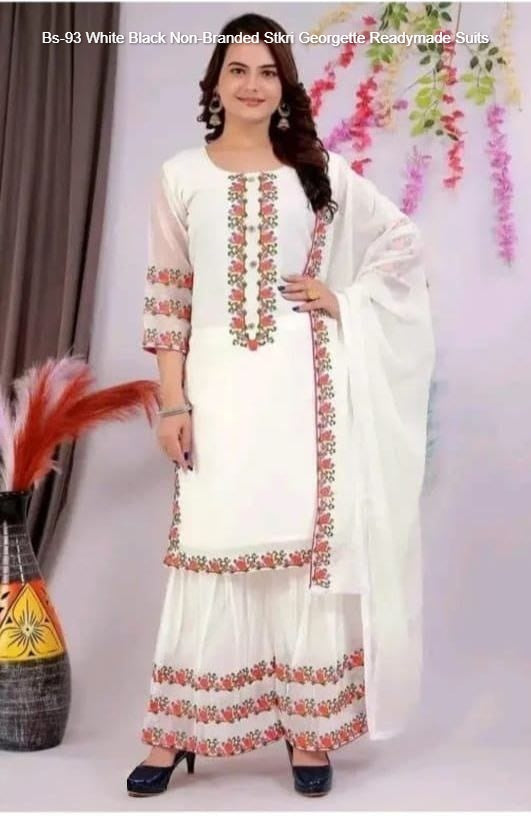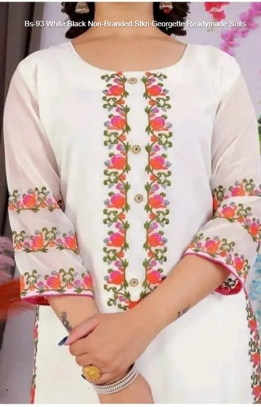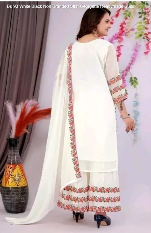 Bs-93 White Black Non-Branded Stkri Georgette Readymade Suits