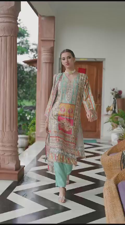 - Fabric Detail: Top : Muslin Digital Printed With Hand Embroidered , Bottom : Viscose, Dupatta : Muslin Digital Printed ,