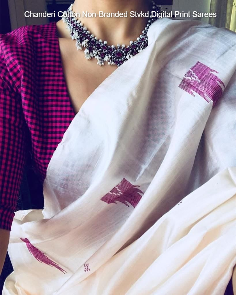 Chanderi Cotton Non-Branded Stvkd Digital Print Sarees