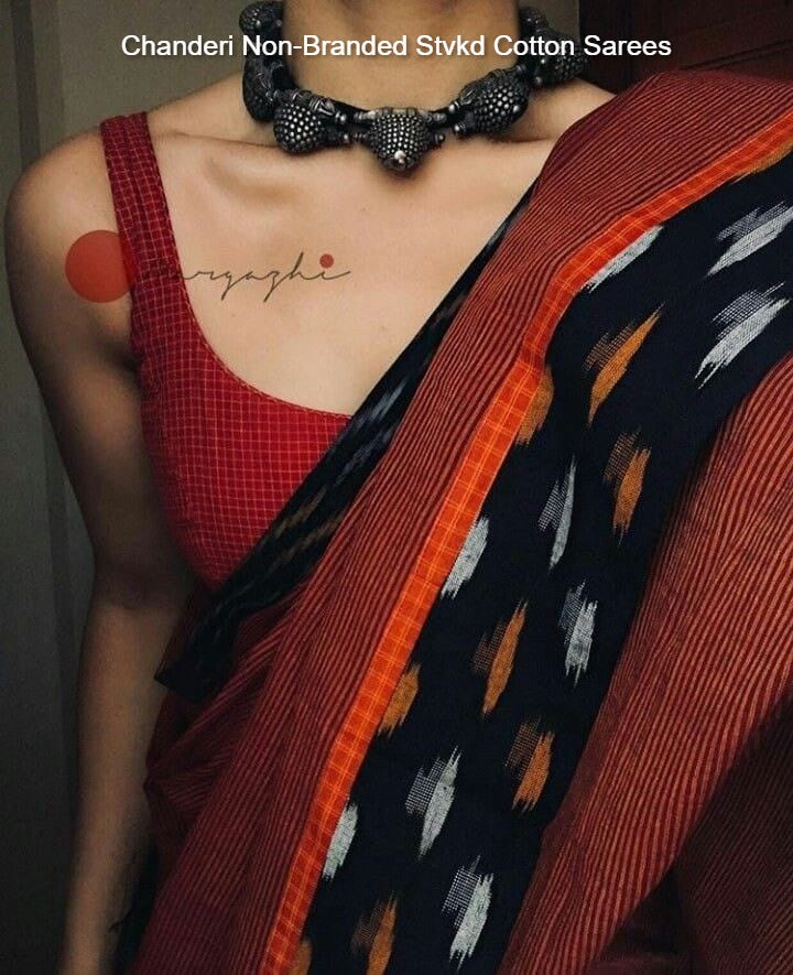 Chanderi Non-Branded Stvkd Cotton Sarees