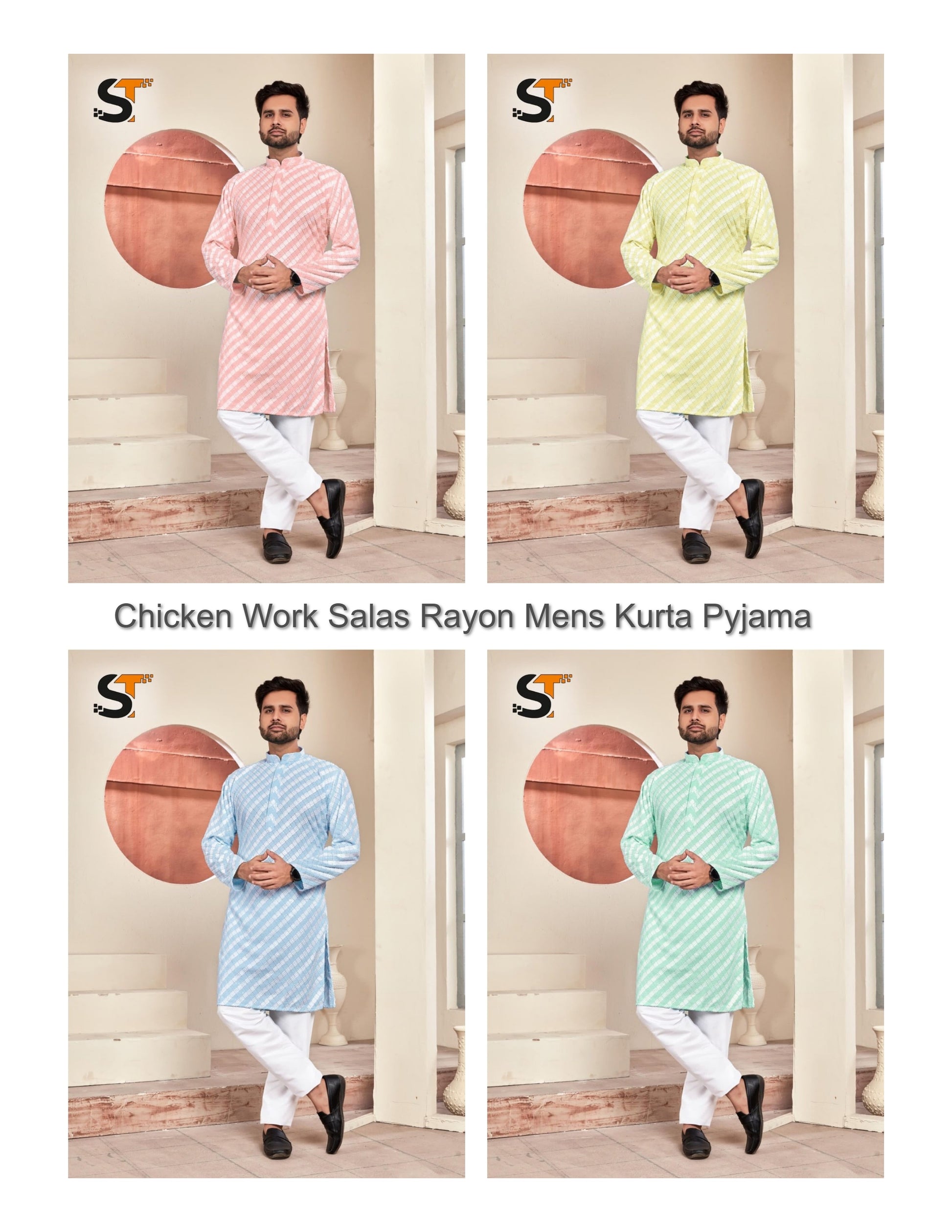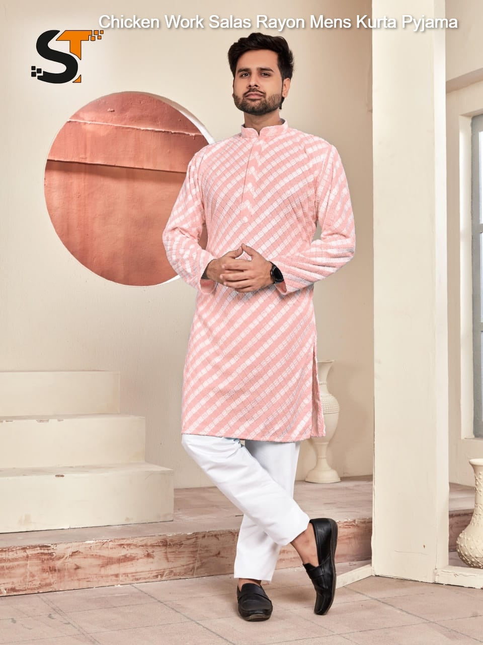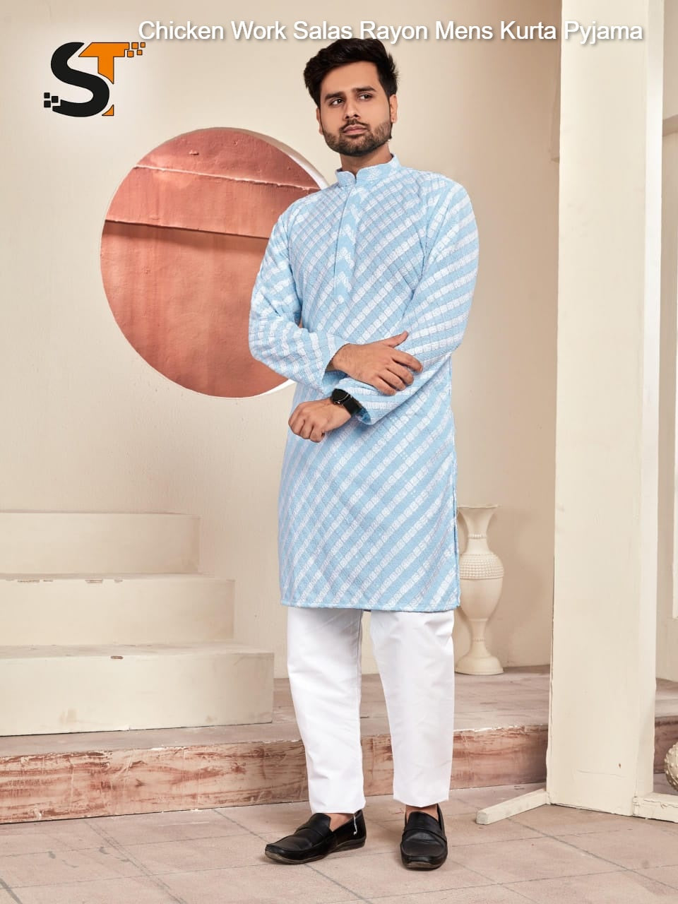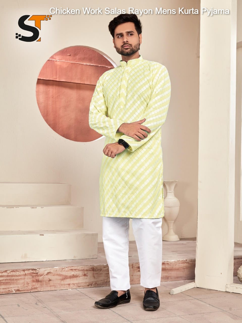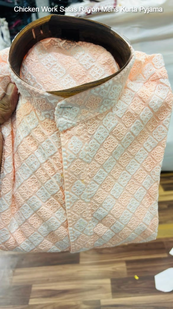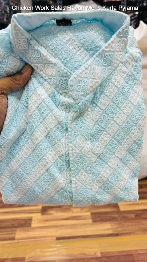 Chicken Work Salas Rayon Mens Kurta Pyjama