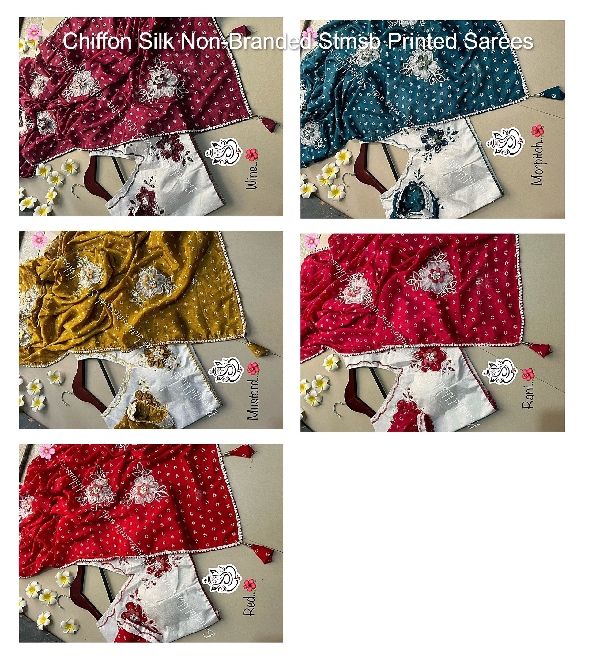 - Chiffon Silk Non-Branded Stmsb Printed Sarees Dealer Ahmedabad Surat Wholesale Gujarat India Lowest Price Best Quality Buy Purchase Shipping Kurta Salwaar Kameez Also free Cash on delivery