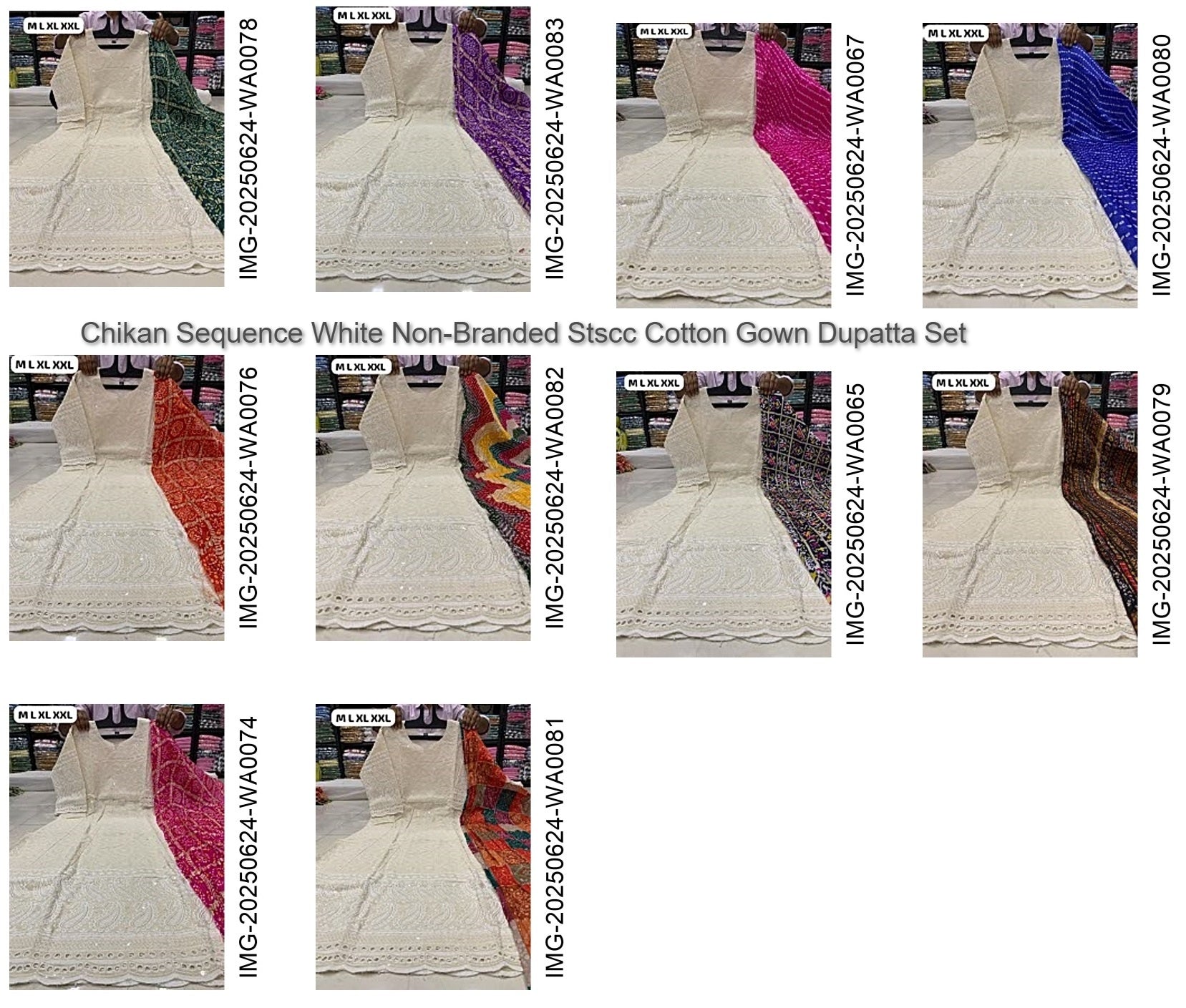 - Chikan Sequence White Non-Branded Stscc Cotton Gown Dupatta Set Dealer Ahmedabad Surat Wholesale Gujarat India Lowest Price Best Quality Buy Purchase Shipping Kurta Salwaar Kameez Also free Cash on delivery